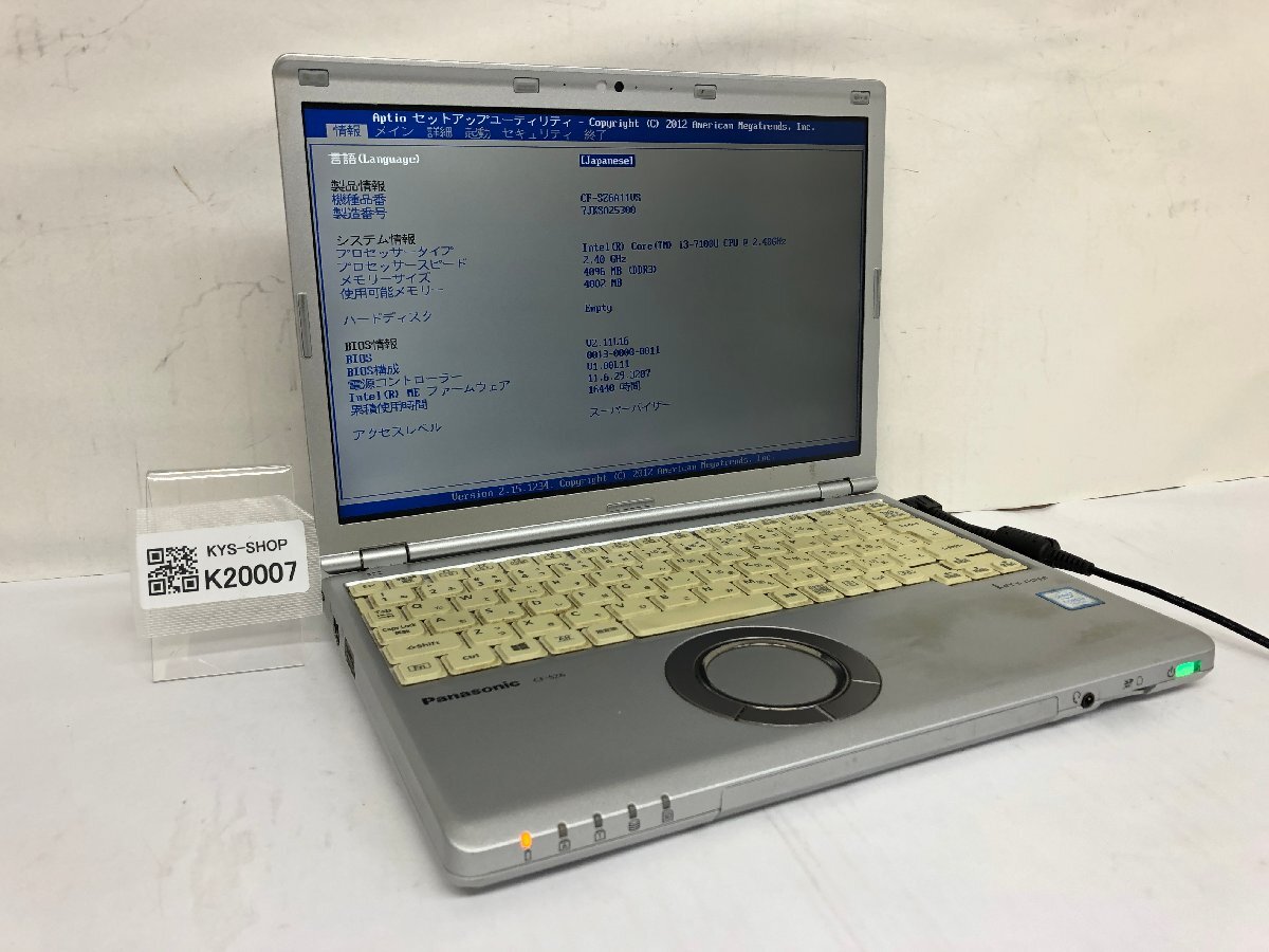 ジャンク/ Panasonic CF-SZ6A11VS Intel Core i3-7100U メモリ4.1GB ストレージ無し 【K20007】