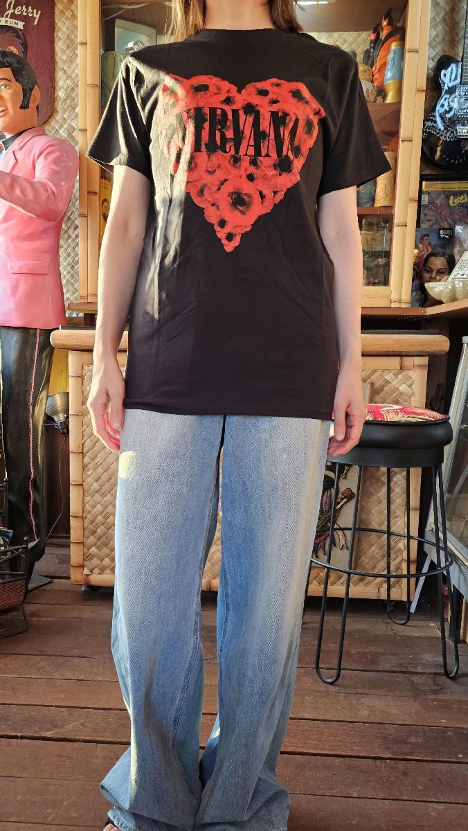 | Nirvana Unisex T-Shirt: Poppy Heart 正規品 '90年代ロックのカリスマ、カート・コバーン率いる伝説のバンド、ニルヴァーナのTシャツ「Poppy Heart」UKライセンス品です。 ハートを模るポピーにバンドロゴがを落とし込み.... ニルヴァーナがバンドとして最後に演奏された曲であり、 94 年 4 月にコバーンが亡くなる前にミュージック ビデオが制作された最後の曲である、 IN UTEROからのシングル・カット「Heart-Shaped Box」モチーフのデザインです。 正規品 ※タグの仕様・表記は入荷時期により異なります。 Lサイズ 175cm位の方~よいかと思われます。肩幅48cm, 身幅56cm, 着丈76cm モデル 161cm , Sサイズ着用 メール便送料¥250(代引き不可・紛失補償なし) THRASHER、Sailor Jerry、LUCKY13、アメキャラ、ムービー等ライセンスTシャツ、RATFINK関連品、バンドTシャツ等取り扱っております。 ** 他にも色々出品中です。 CWbm IWTS | |||||||