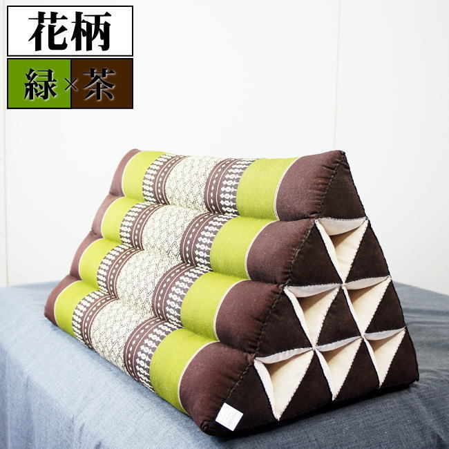 三角枕 三角 クッション 4段 花柄 茶緑 ( 背もたれクッション 足置きクッション 足枕 読書枕 腰痛 ホテル アジアン )