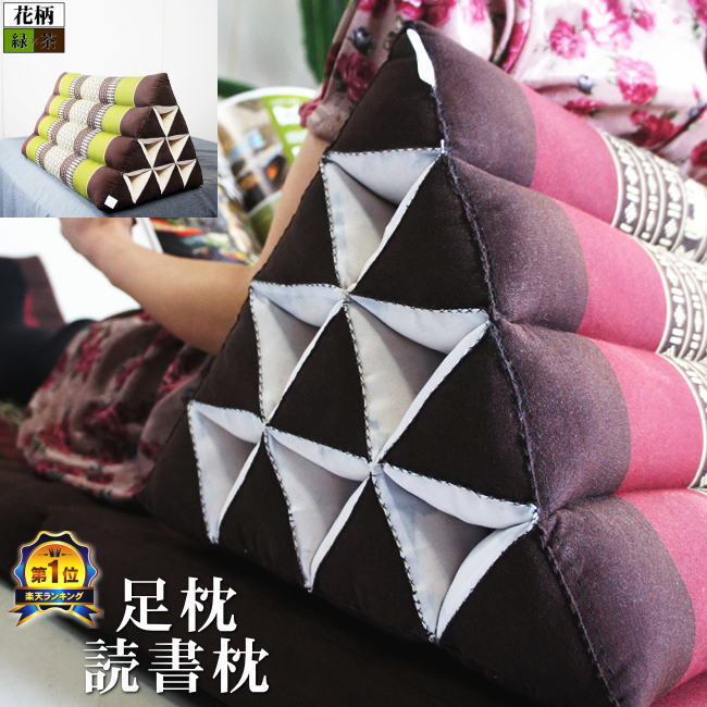 三角枕 三角 クッション 4段 花柄 茶緑 ( 背もたれクッション 足置きクッション 足枕 読書枕 腰痛 ホテル アジアン )