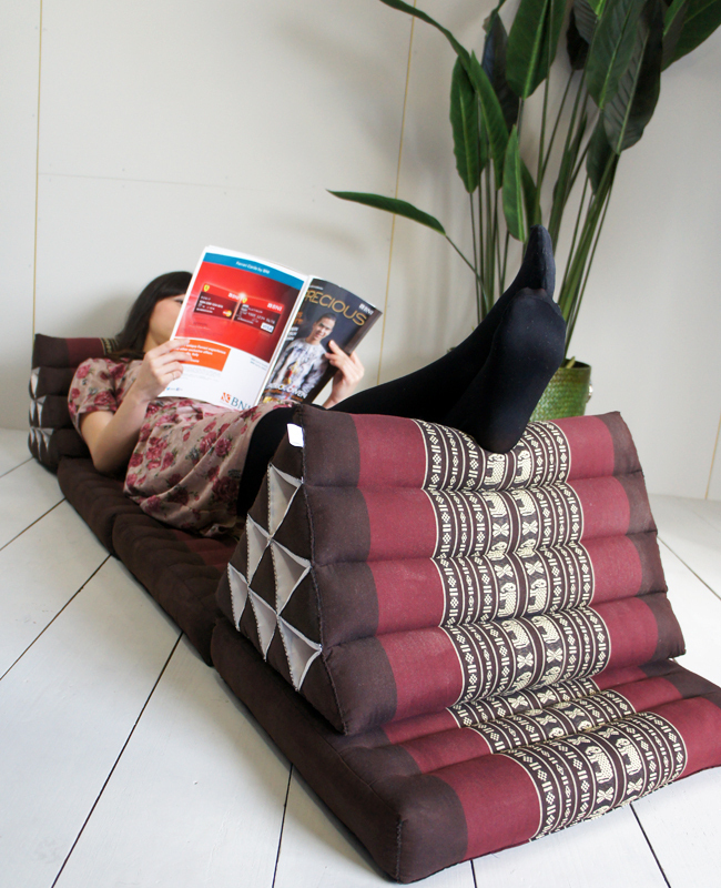 三角の60度という角度のものは生活の中にあまりない商品で、使い方は様々です。定番のベッドでの読書枕そしてソファの肘掛、昼寝の足挟み用、足枕など、何かと便利な三角枕です。中綿は「カポック」100%でスポンジ材などでは体感できないソフトな硬さです。※カポックとはパンヤ綿のことで、木の実から採取する綿になります。インテリアに、そしてリビングを楽しくするサイドアイテムに!デザイン性と機能性を備えたアジアンリゾートインテリアを代表する三角枕です。