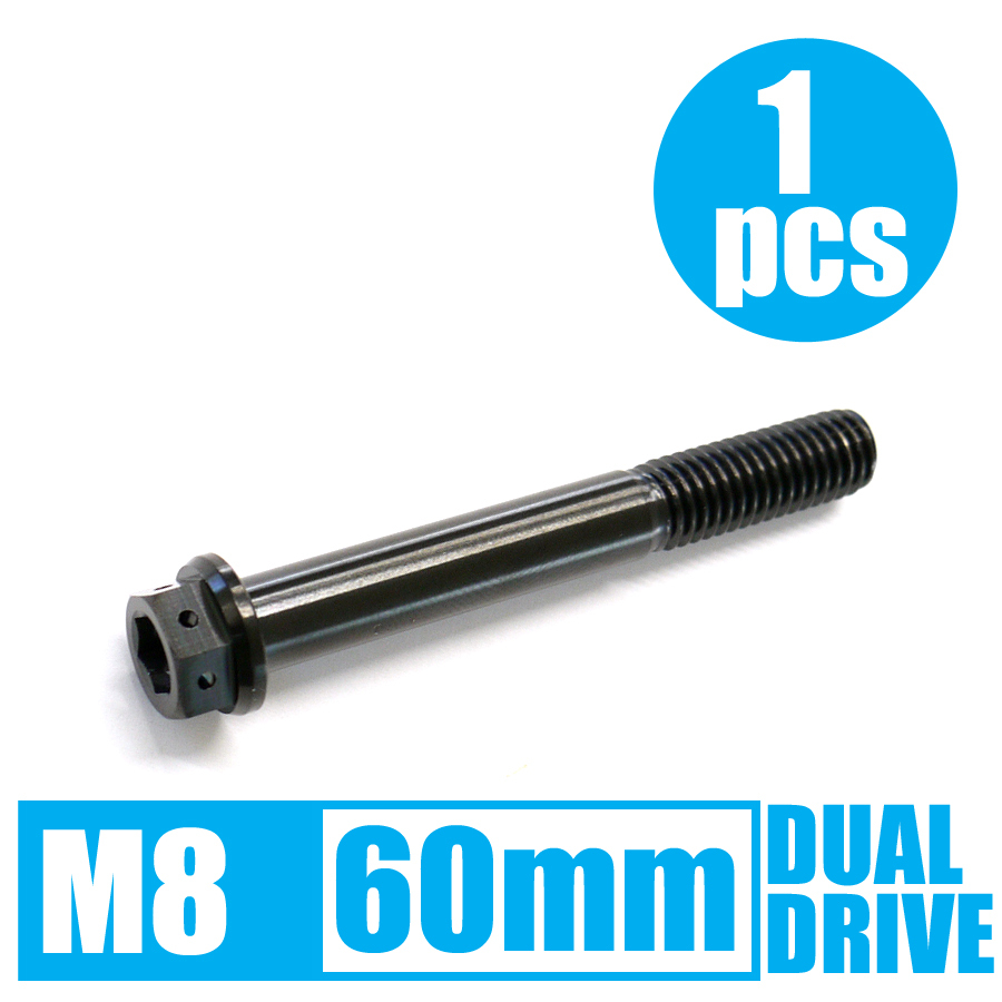 64チタン合金ボルト デュアルドライブ M8×60mm P1.25 ゆうパケット対応 ブラック 黒 Ti-6Al-4V