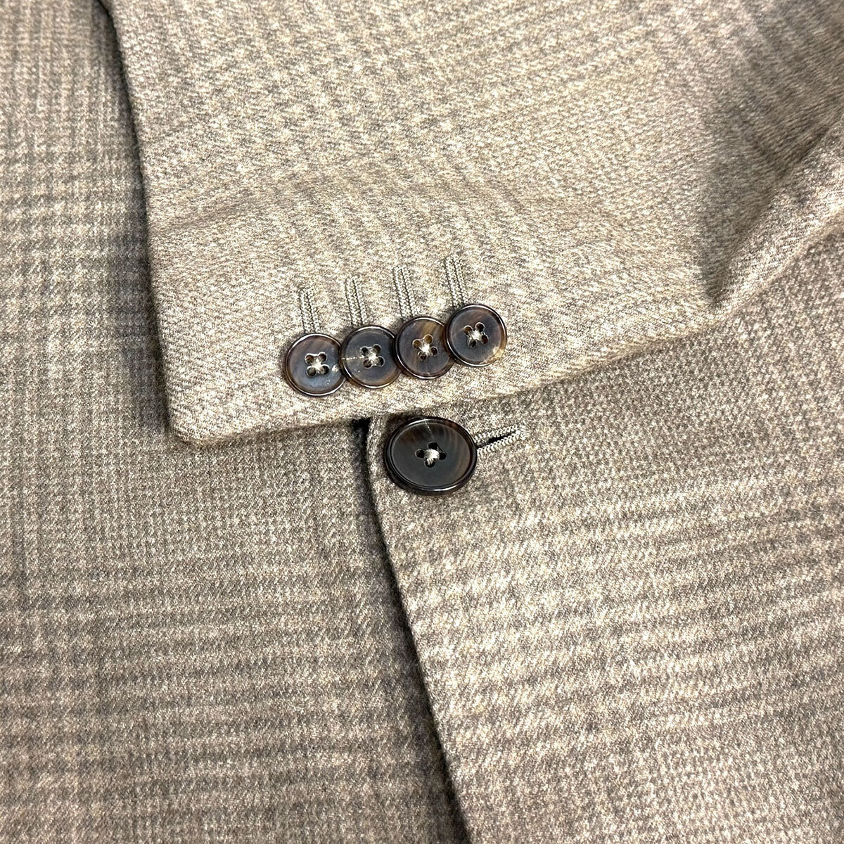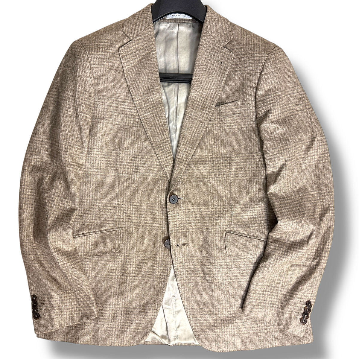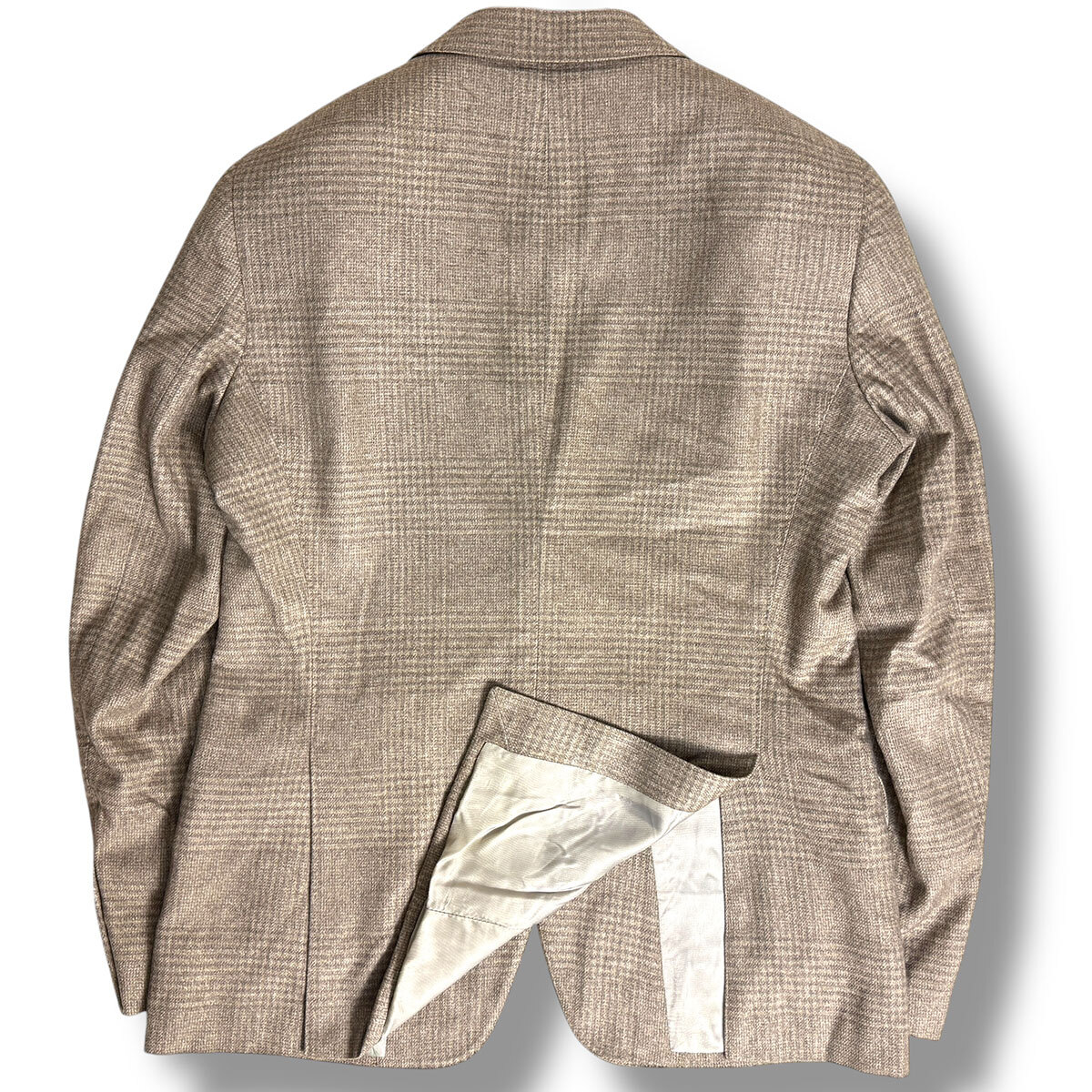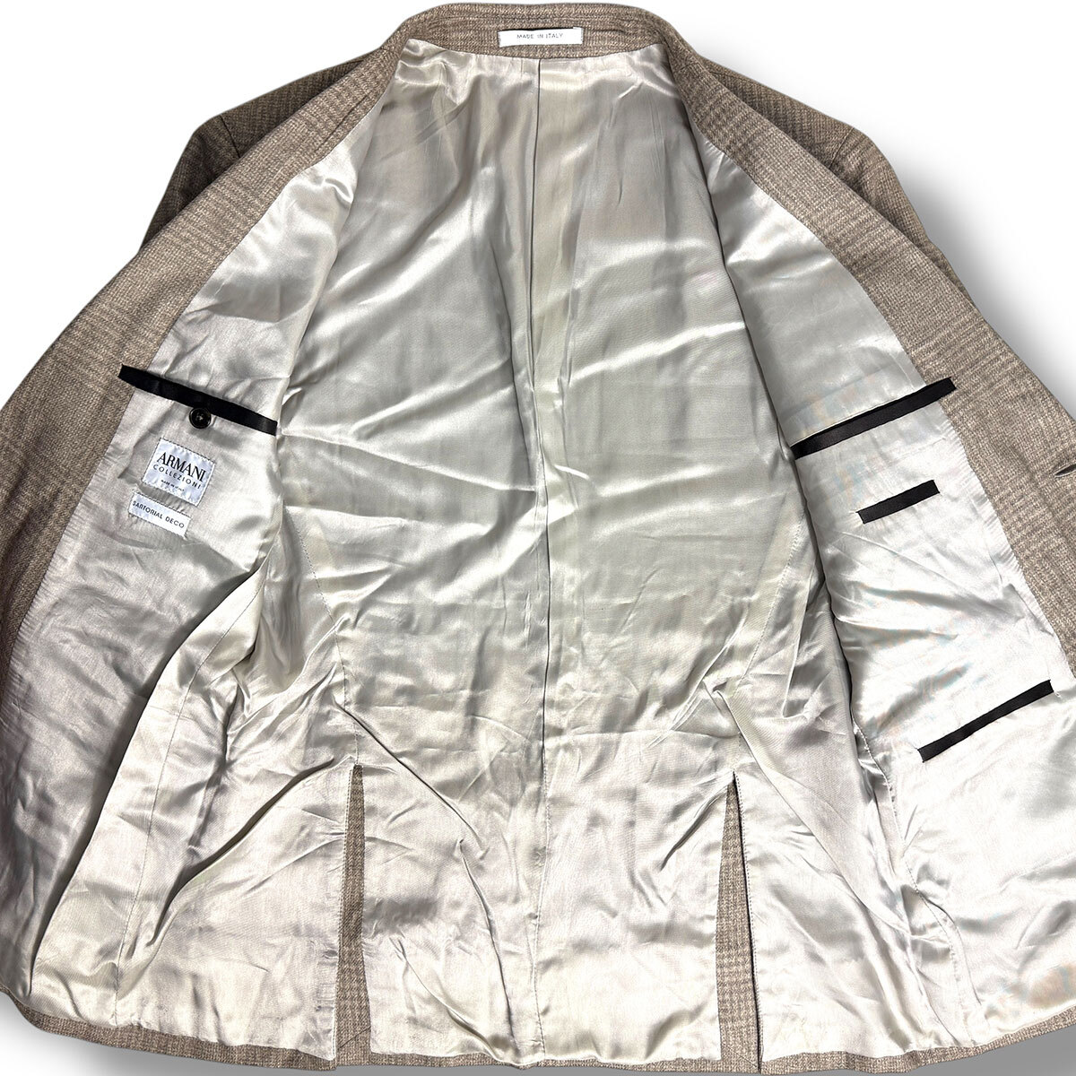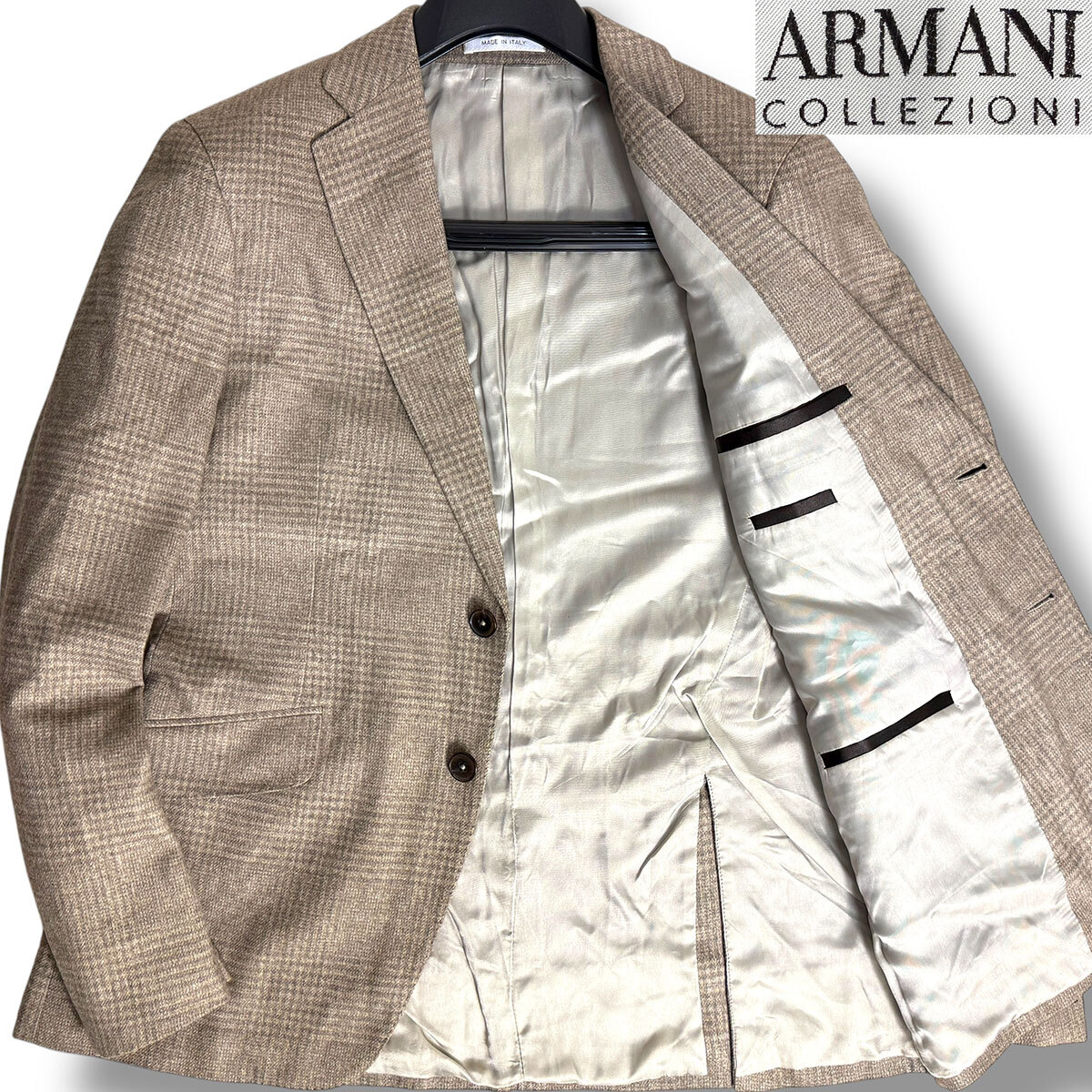 J4067美品アルマーニコレッツォーニ SARTOTIALDECO シルクカシミヤチェック柄テーラードジャケット ベージュブラウン 50 ARMANI COLLEZIONI