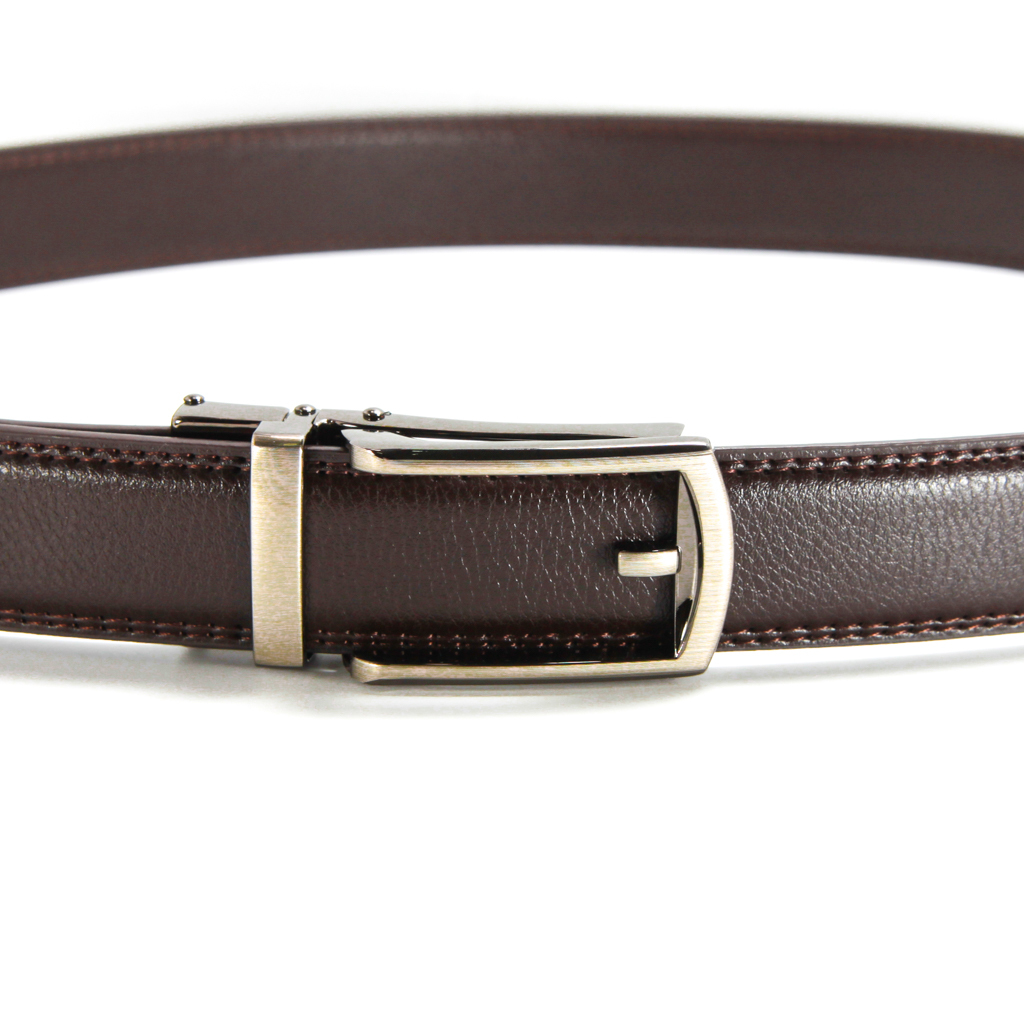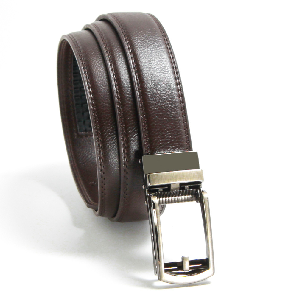 メンズベルト 牛本革 レザー ブラウン  穴無しオートロック式 紳士ビジネス 新品