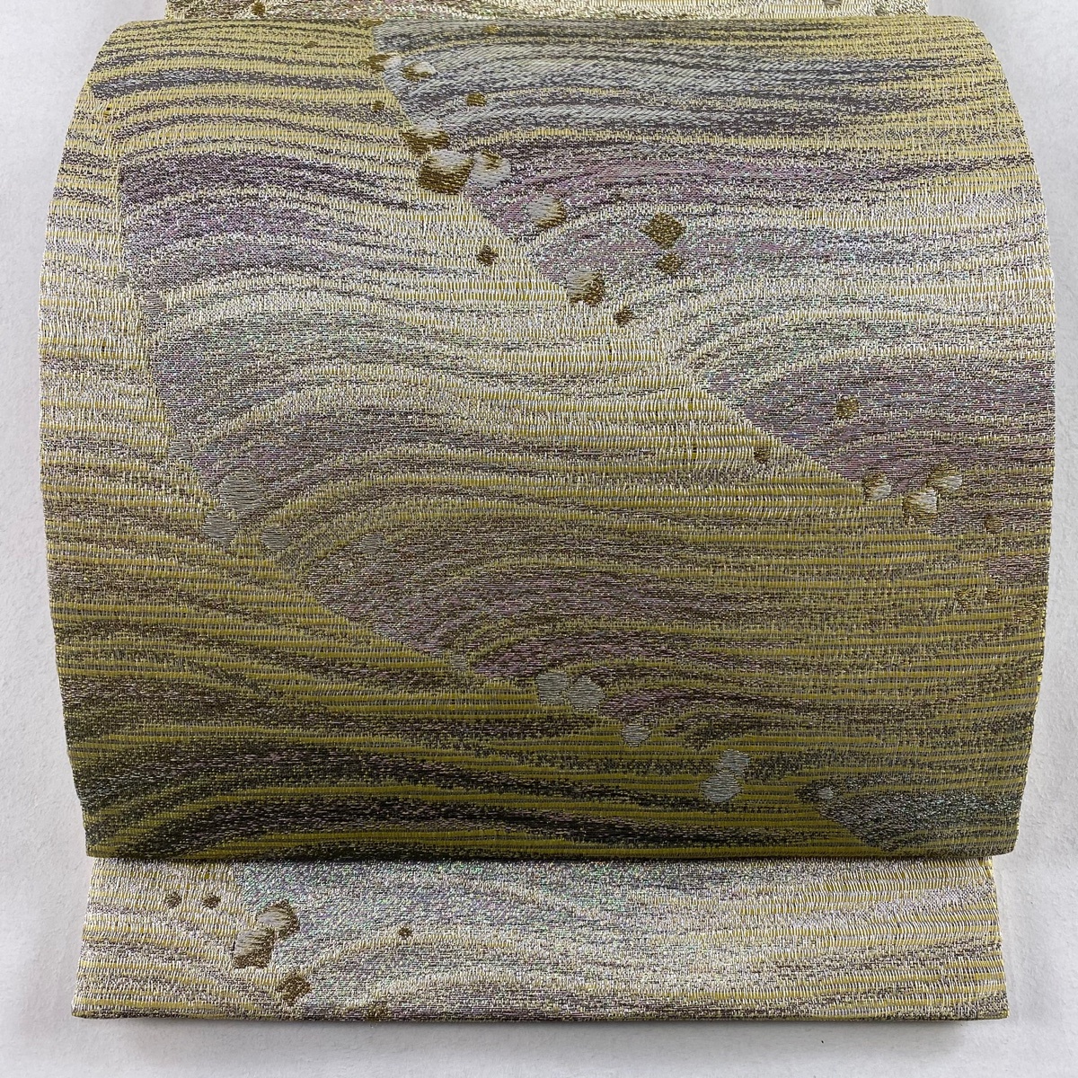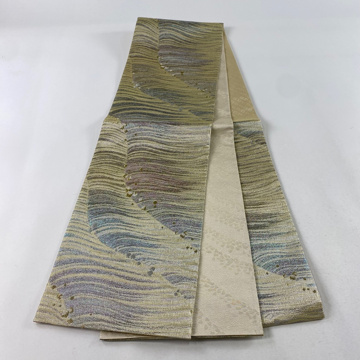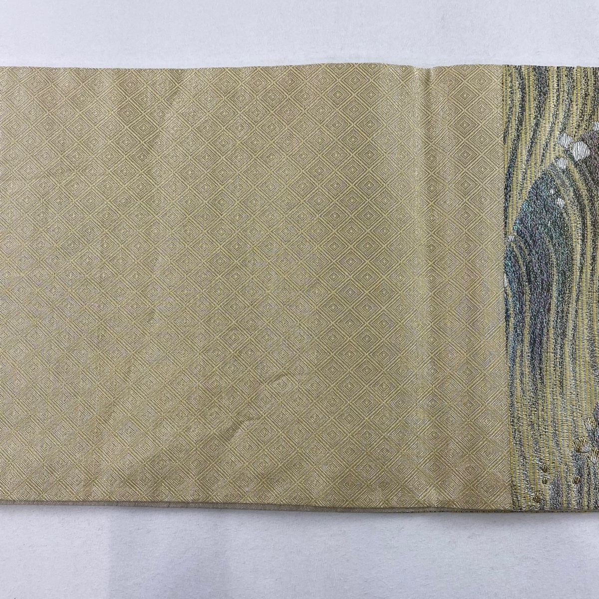 | 袋帯 美品 秀品 証紙 箔ちらし 波 箔 ベージュ 六通 正絹 【中古】 |