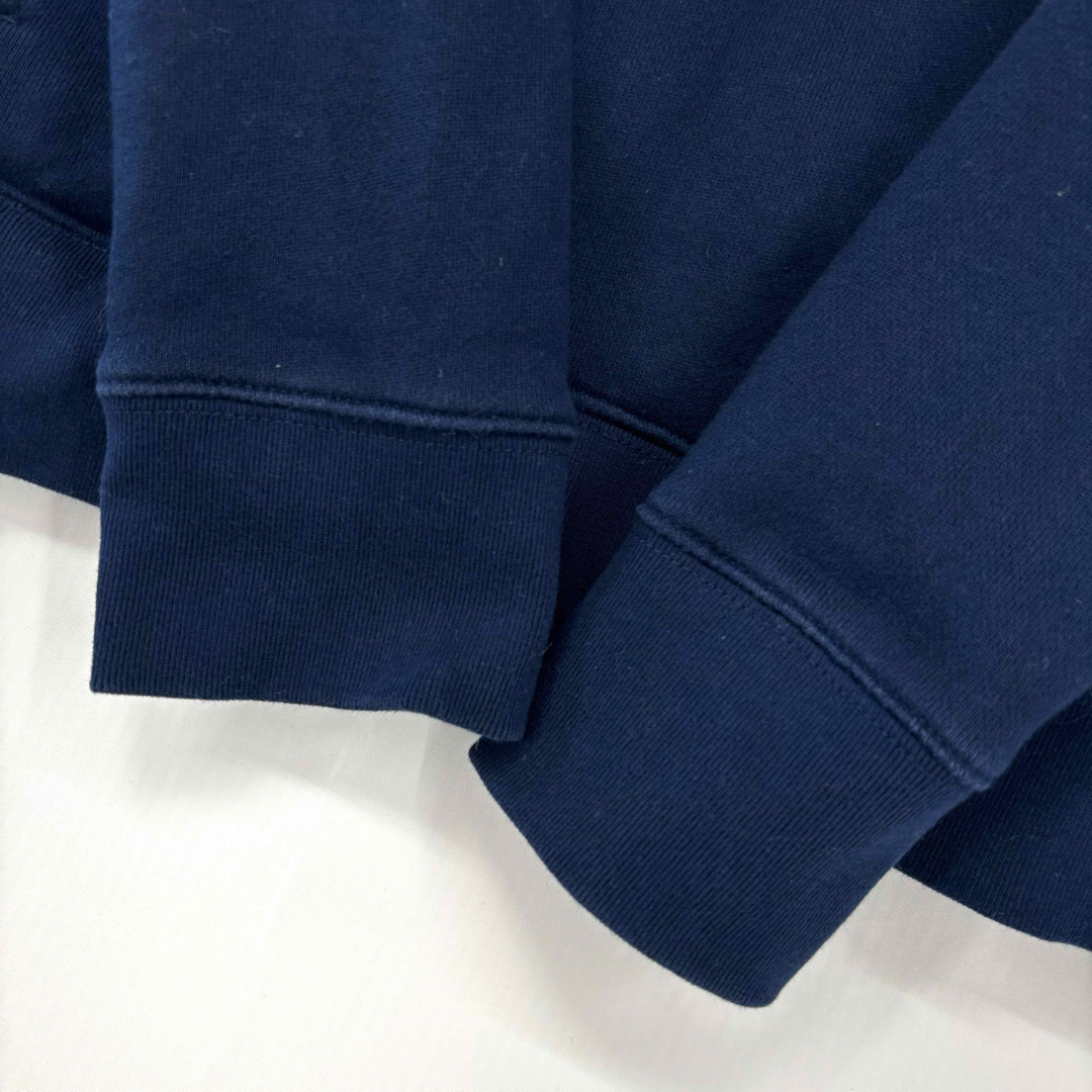 ネイビーのボディに映える大きなホワイトロゴが、着るだけでコーディネートの主役になります。
