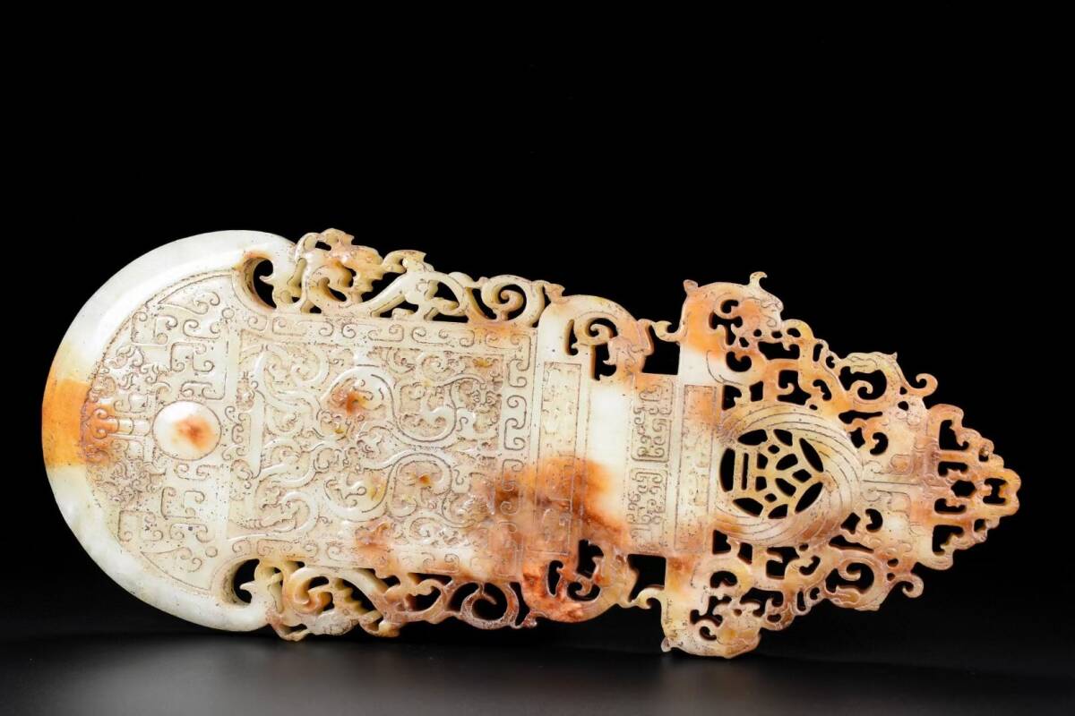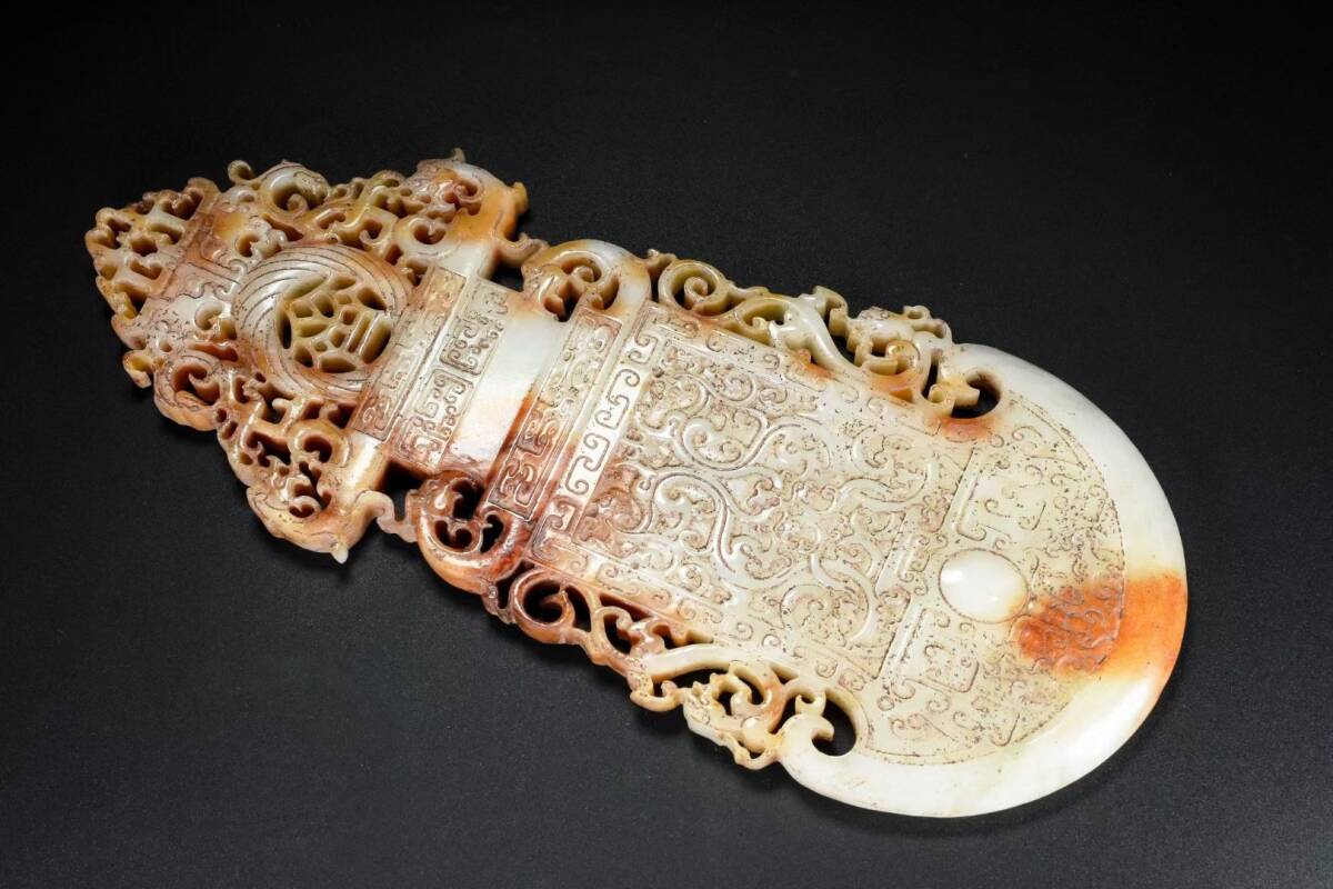 *珍品旧蔵* 清 玉彫 和田老玉 龍鳳呈祥 玉璧 極細工 中国古玩 骨董品 古美味 H48
