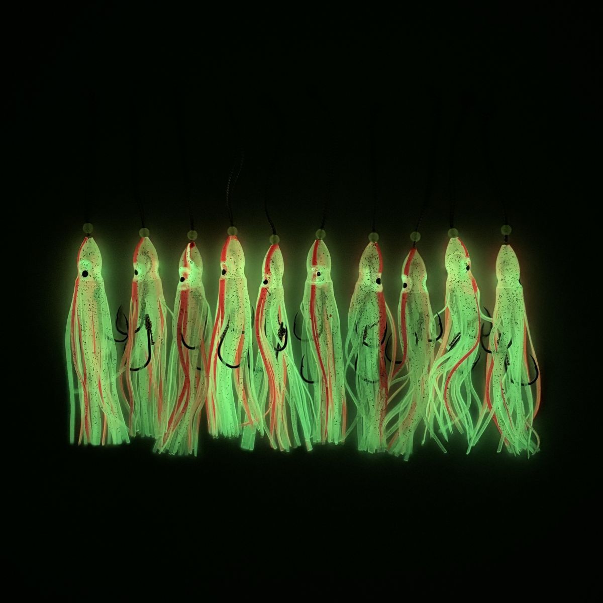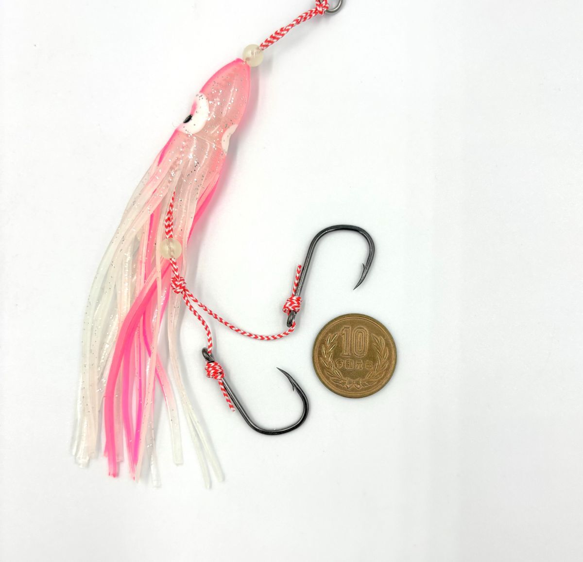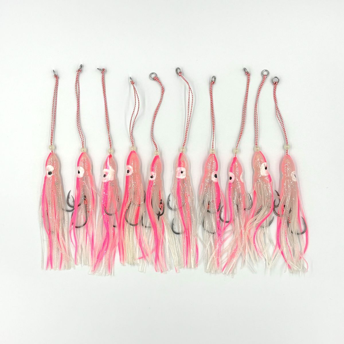 100174 インチクやタイラバに 蓄光 夜光タイプ タコベイト 120mm ホワイト&ピンク 10本セット マダイ 青物 ヒラメ タチウオ ハタ