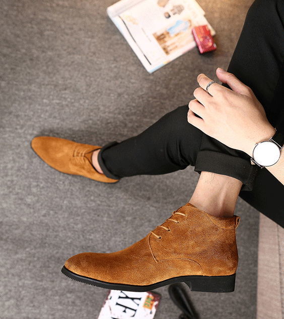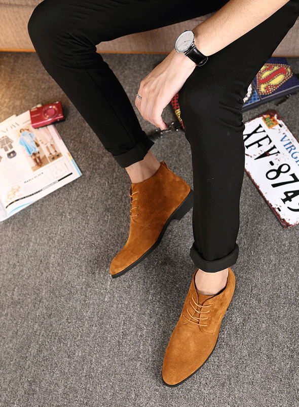 ★NEW★メンズ TL71299-25.5cm/41 本革 無地 ショートブーツ ビジネスシューズ ブラウン(3色) スエード 完売人気