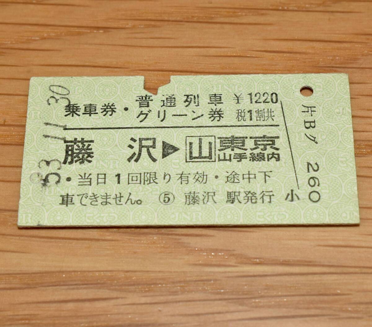 乗車券・普通列車グリーン券 藤沢 → 東京山手線内 です。古いものなので、経年劣化によるヤケ,シミ,汚れ,折れシワ等見られる場合があります。写真にてご確認下さい。