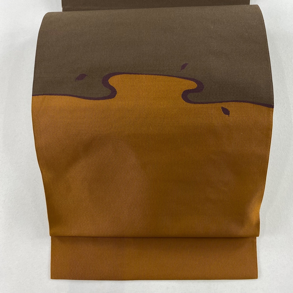 | 名古屋帯 美品 秀品 八寸名古屋帯 松葉仕立て トンネル仕立て 霞 葉柄 染め分け 灰茶 正絹 【中古】 |