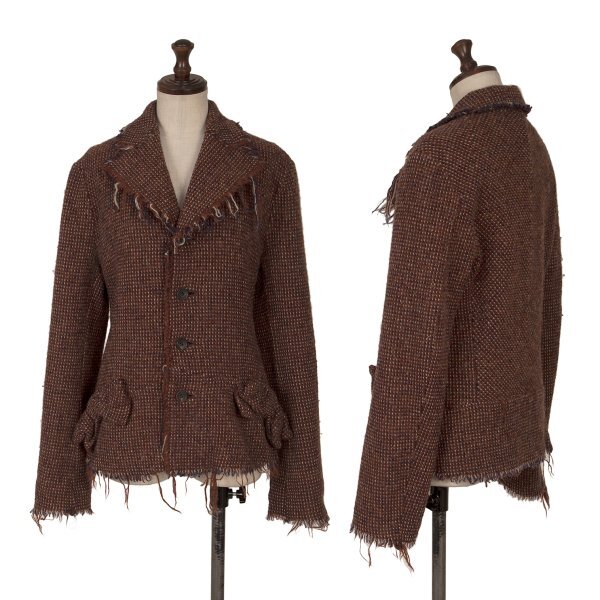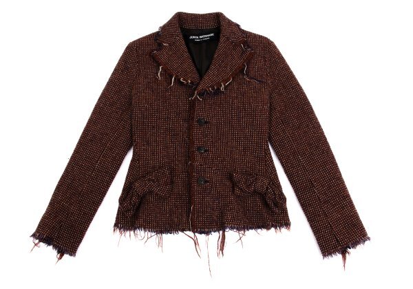 | ジュンヤワタナベ コムデギャルソンJUNYA WATANABE COMME des GARCONS 縮絨裁ち切りツイードリボンウールジャケット ワイン紺M |