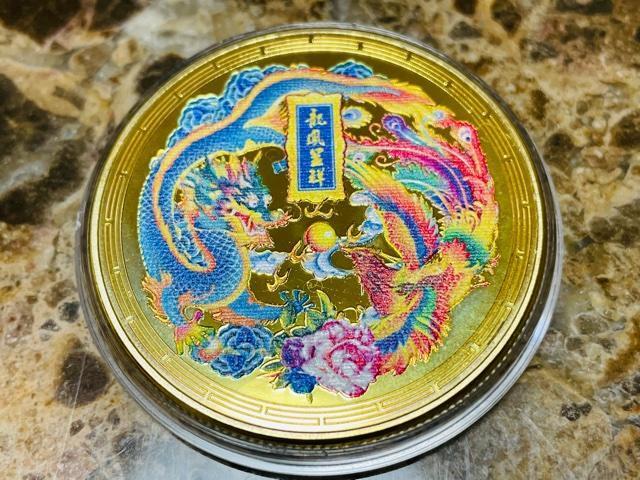 【M4】龍 鳳凰 財運 開運 強運 記念 コイン メダル ※鑑賞・コレクションの為のメダルコインです。 磁石につくので金。銀などの成分ではないです。 金・銀メッキでもない可能性もあります。 ご理解の上お願いします。 ■金属:材質成分はわかりません。 ■直径:約4.5cm ★保護ケース付き 側面など欠損・傷等があるかと思いますが 輸送中、保護するケースの為、予めご了承ください。 |