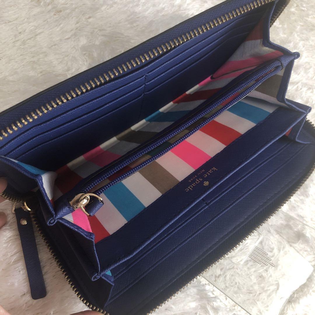 - 汚れ・破れなど:裏面に色むらとファスナーポケット(小銭入れ)に薄汚れ、kate spadeの文字盤に小傷、それ以外は使用感無し。