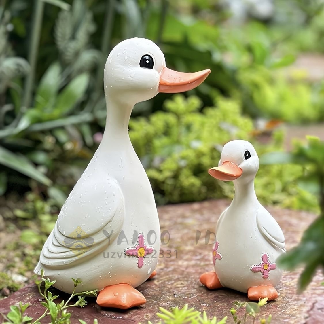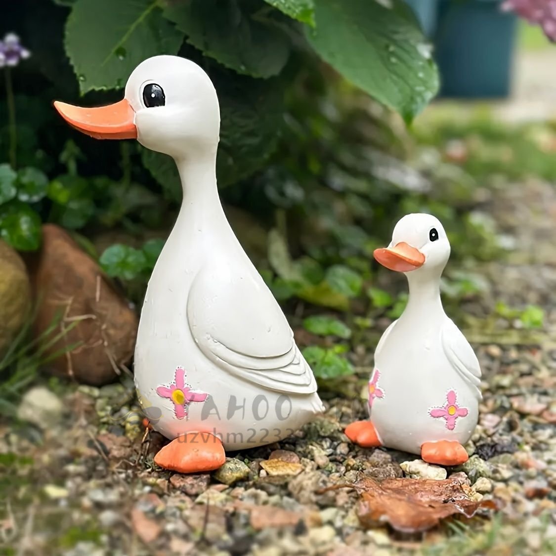 可愛いアヒルの親子オブジェで、あなたのお庭や室内を素敵に演出しましょう。2個セットのこちらの置物は、温かみのあるデザインが特徴で、リビングやダイニング、玄関など、さまざまな場所で活躍します。樹脂素材を使用しているため、屋外でも安心してご使用いただけ、風雨にも強いです。ガーデニングの装飾やインテリアのアクセントとして、心地よい雰囲気を提供します。