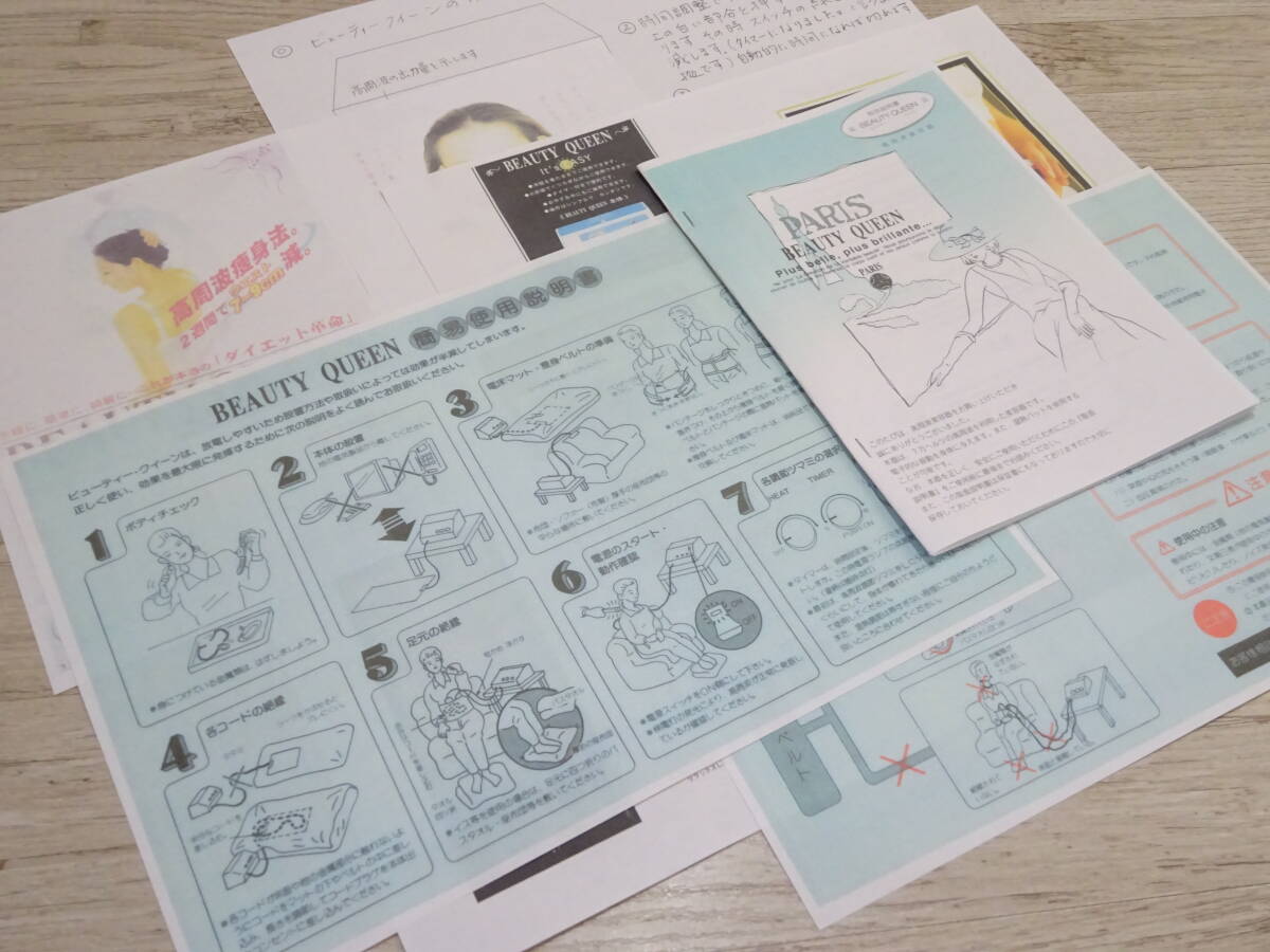 ①本体 ②電床マット ③温熱パット ④美容ベルト ⑤バンテージ×2(洗濯済)⑥検電器 ⑦取扱説明書(COPY)⑧簡易使用説明書(COPY) ⑨Q&A集・資料(COPY) ⑩収納ケース