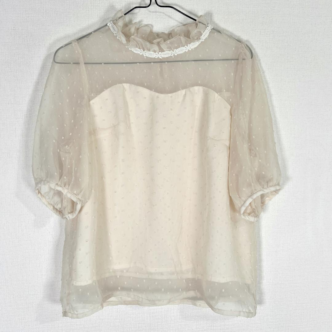 【GRL】グレイル オフホワイト系 レース ブラウス シアーシャツ カットソー トップス シースルー 透け感 レディース Lサイズ【a010】