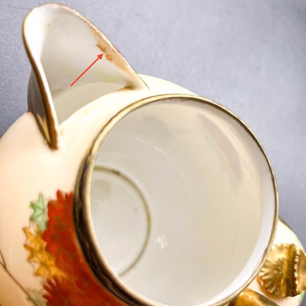 九谷焼様式 金彩赤絵 紅葉図 クリーマー ミルクジャグ オールドニッポン 輸出陶磁器 日本製 里帰り 金襴手 ヴィンテージ 骨董 [SN082411]