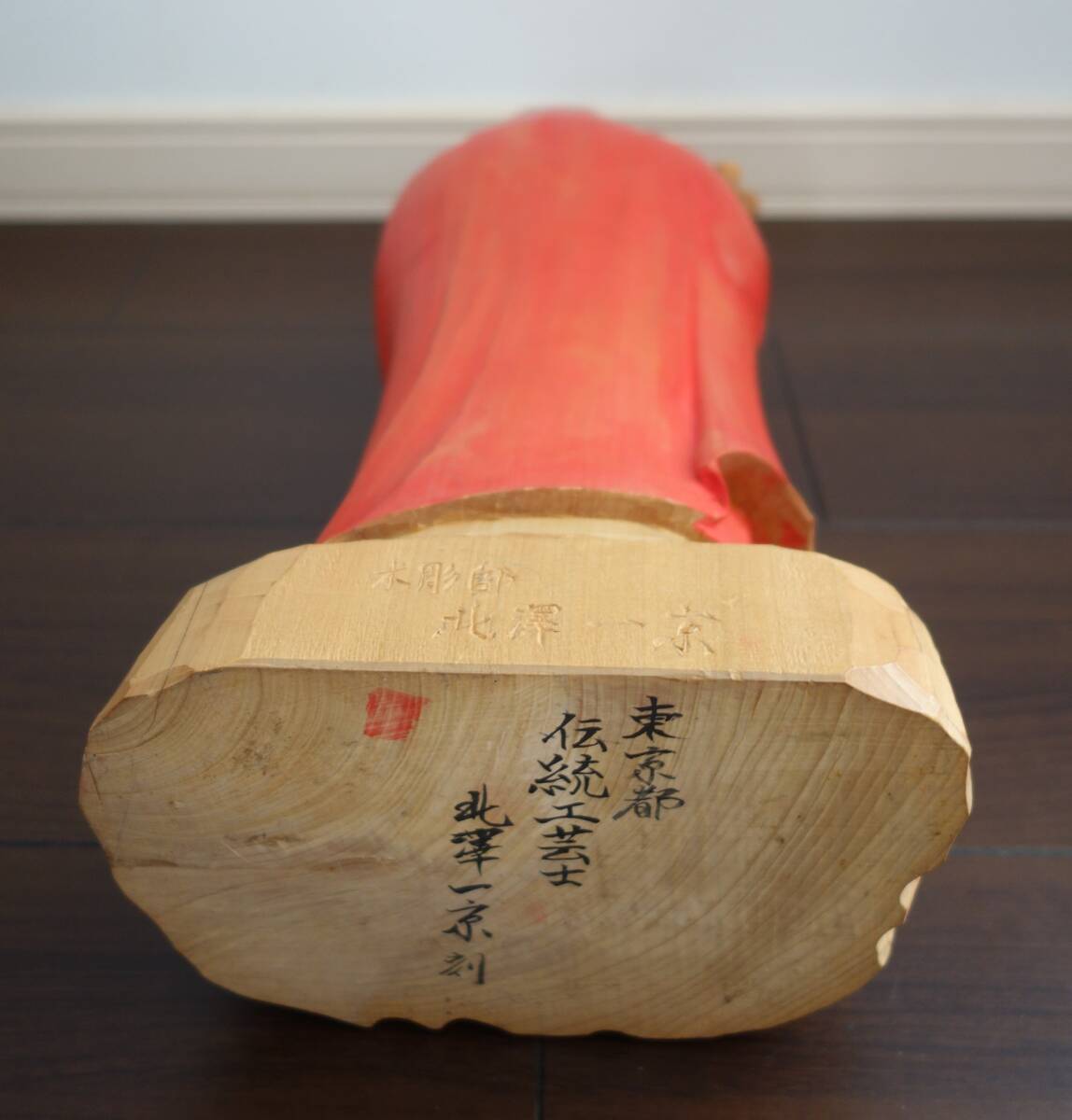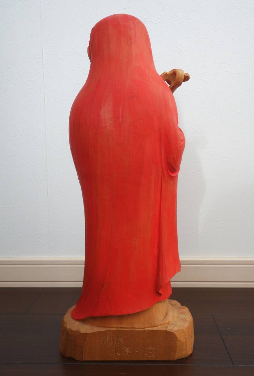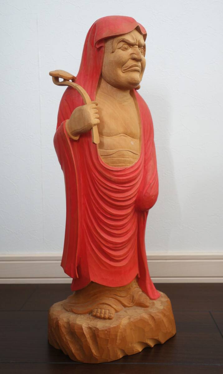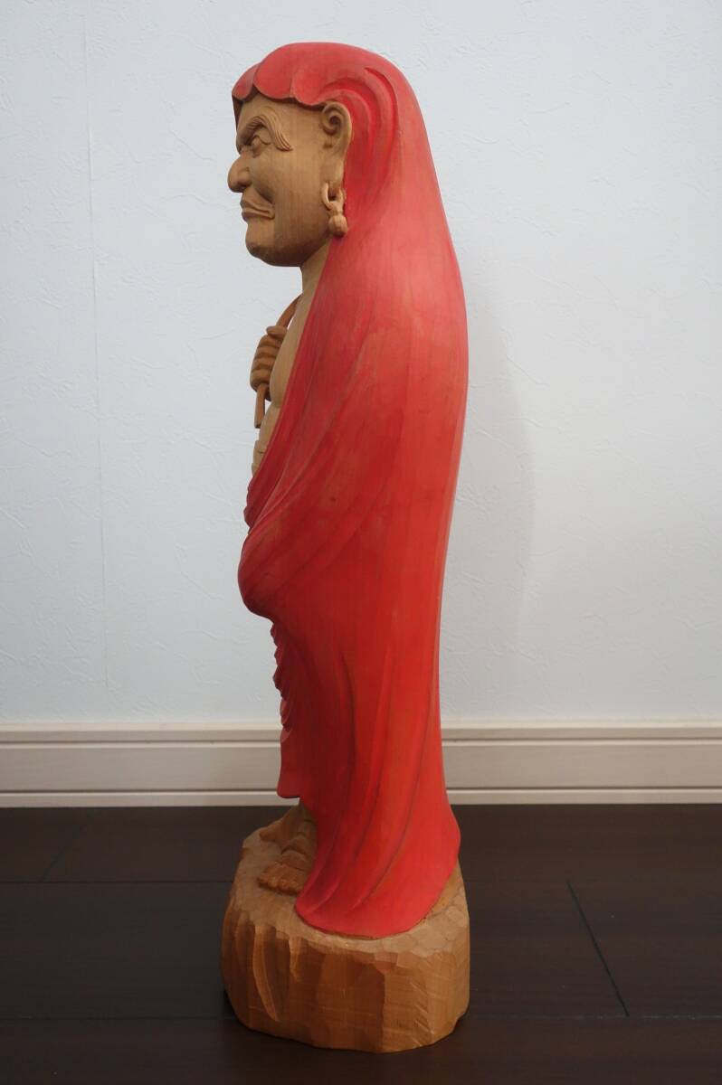 ★伝統 江戸木彫刻 レトロ *東京都 伝統工芸士 北澤一京 刻 銘 在銘 きたざわ いっきょう*大型置物彫刻 菩提達磨 達磨大師立像