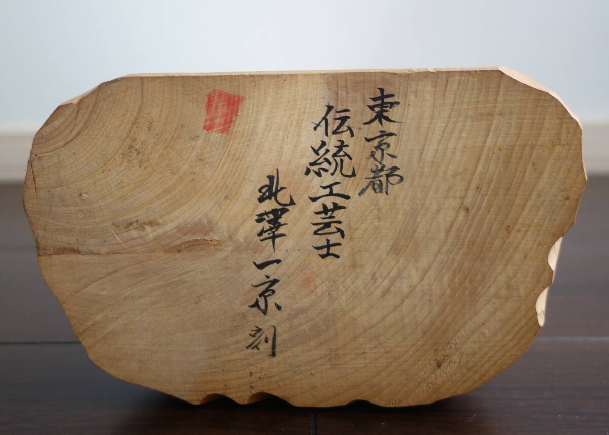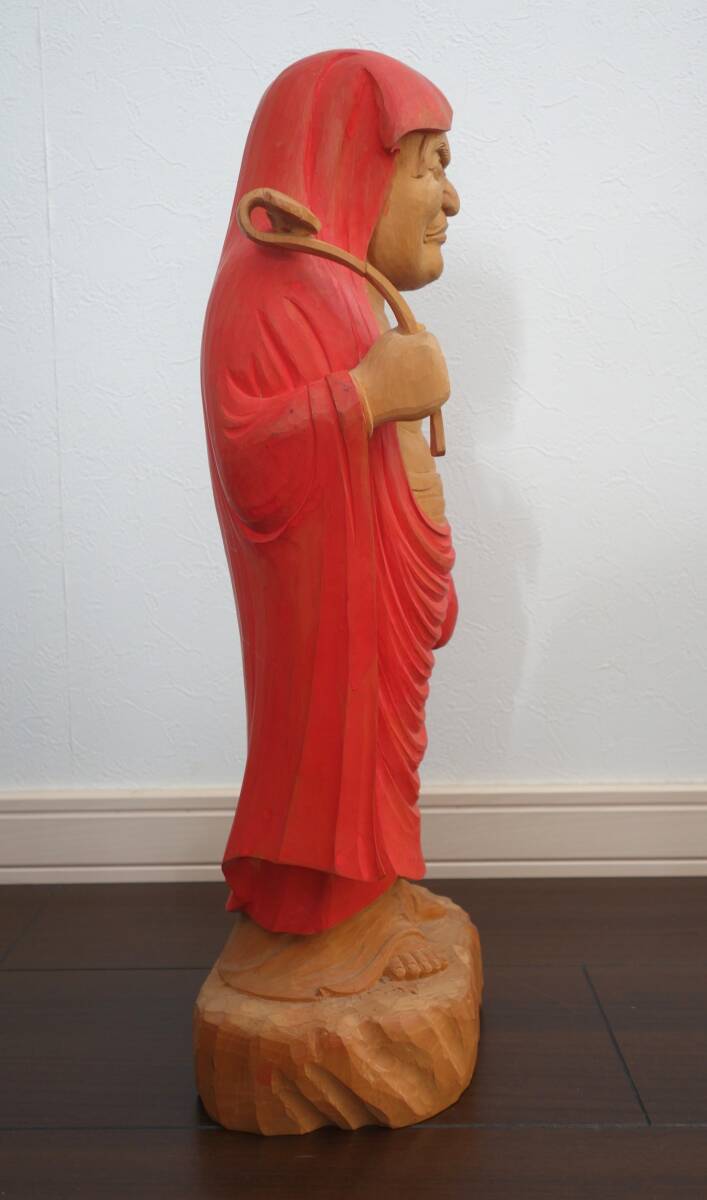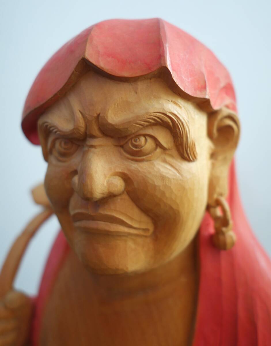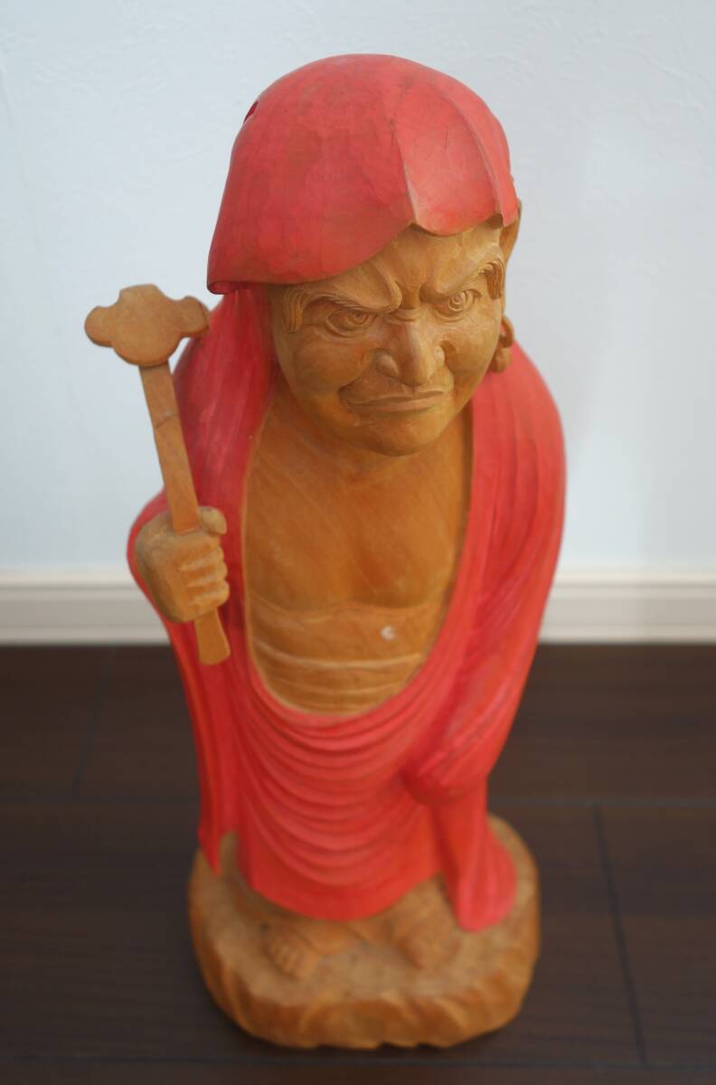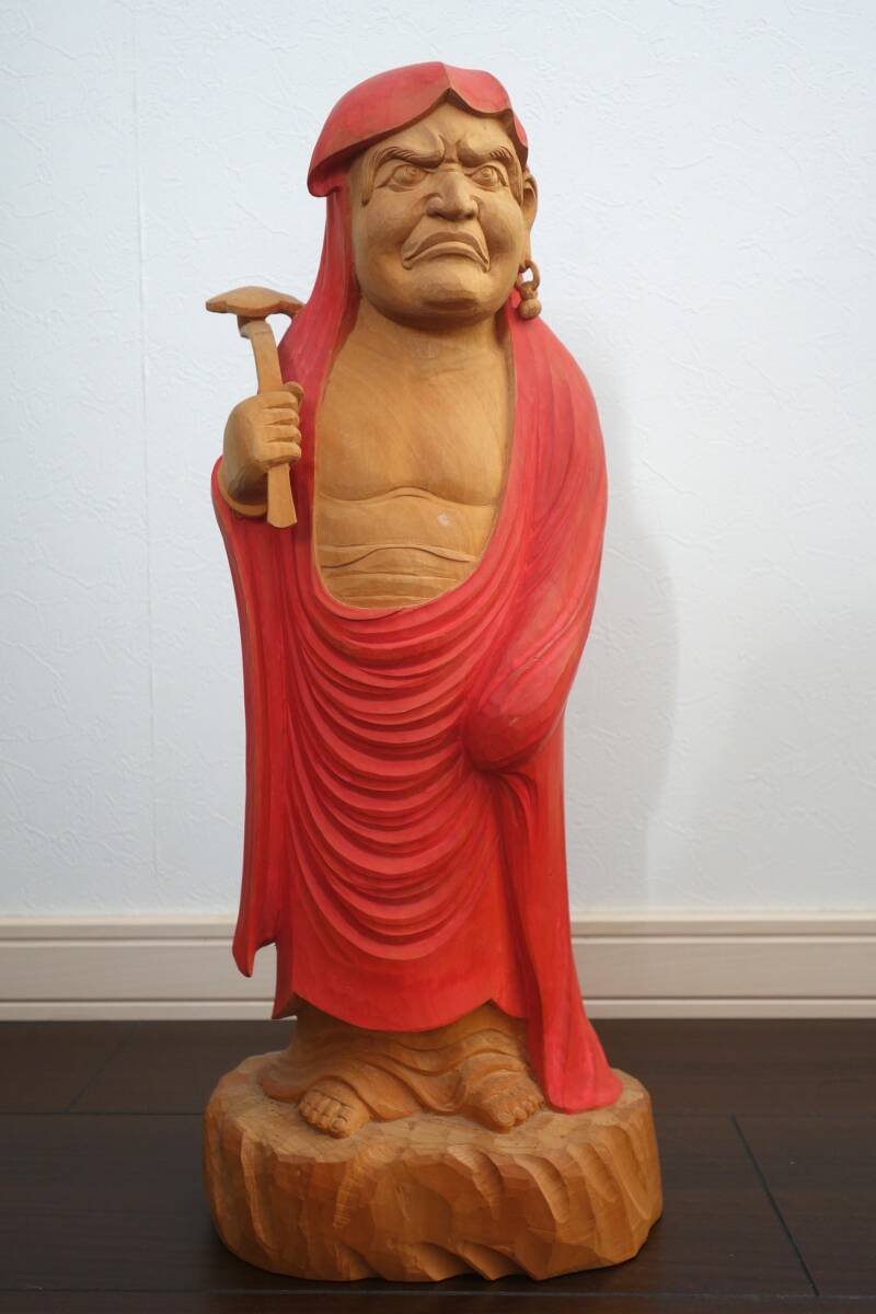 ★伝統 江戸木彫刻 レトロ *東京都 伝統工芸士 北澤一京 刻 銘 在銘 きたざわ いっきょう*大型置物彫刻 菩提達磨 達磨大師立像