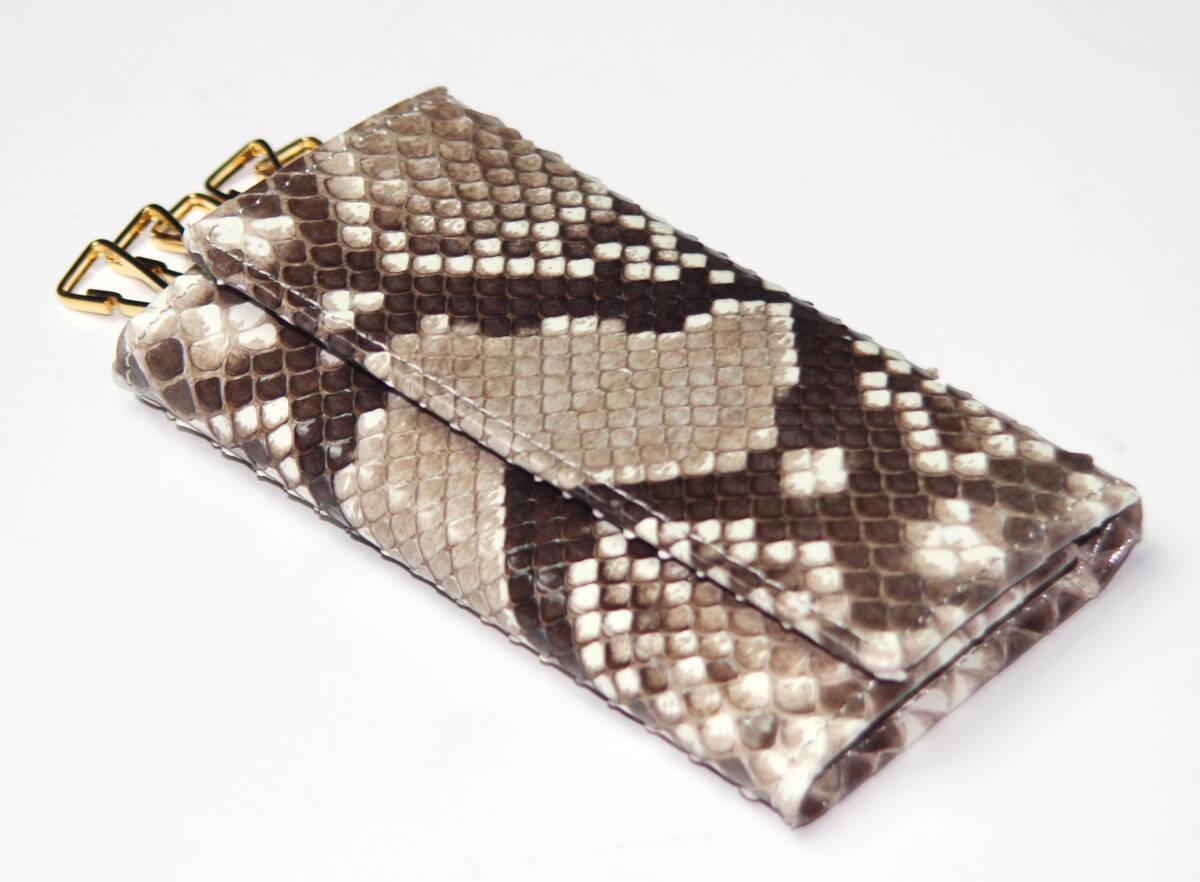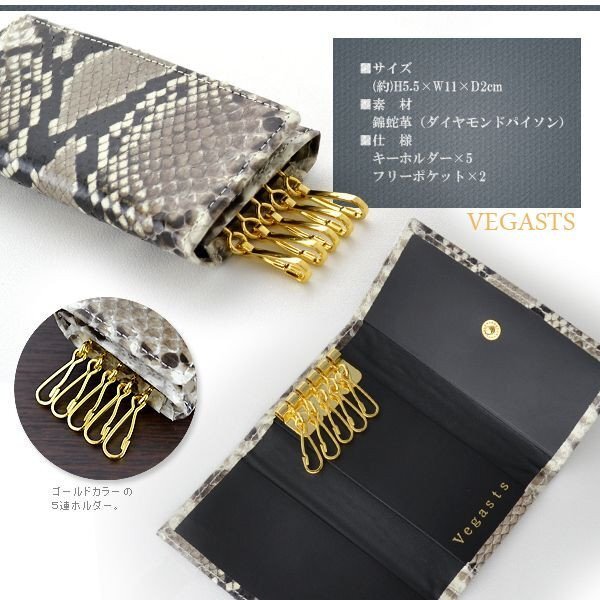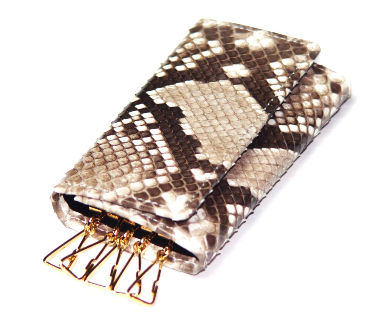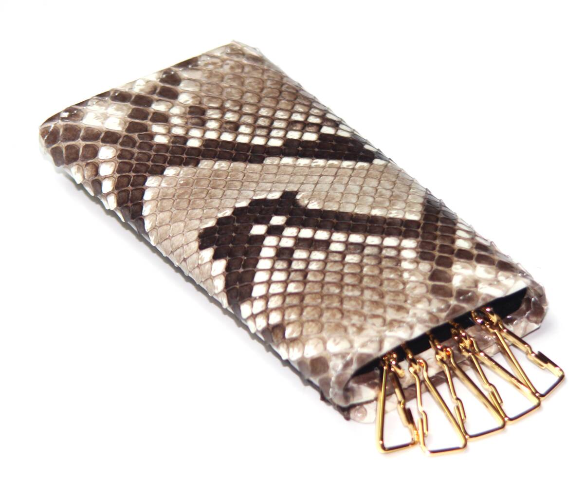 【1点限り赤字大特価】【送料込み】【期間限定】【新品】【税込み】ダイヤモンドパイソン 錦蛇革 日本製 男女兼用 5連フックキーケース