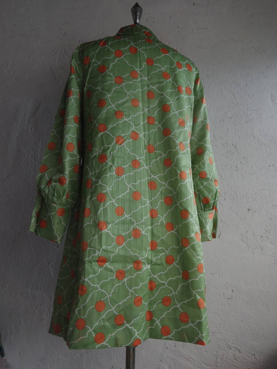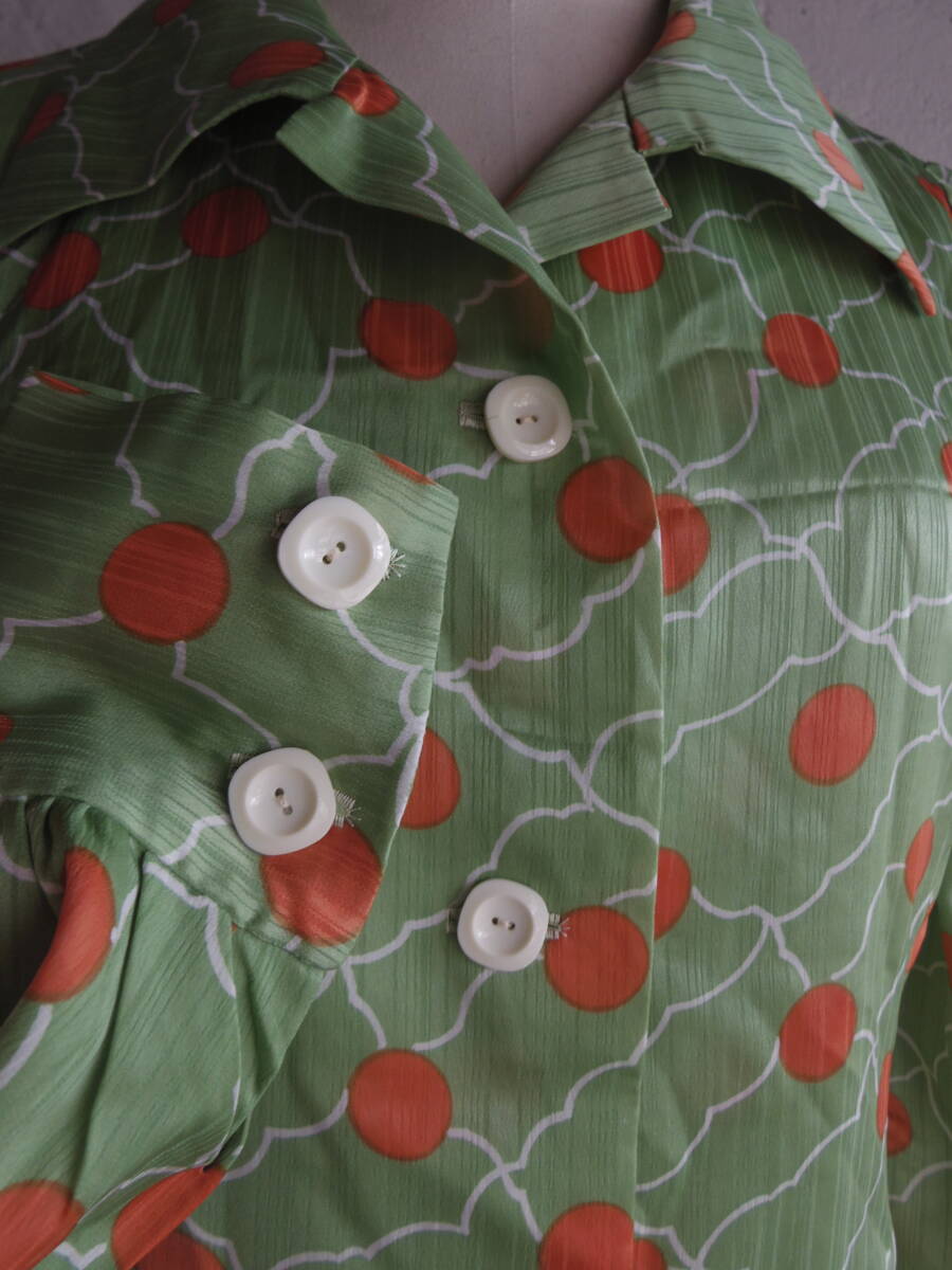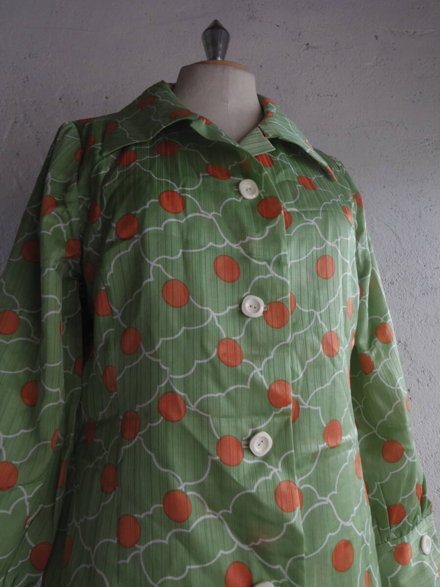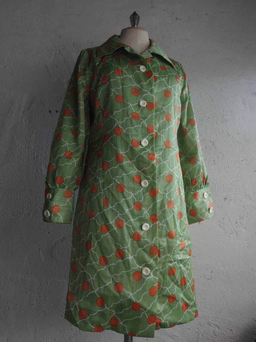 古着♪レトロVintage緑光沢北欧柄おしゃれモダンワンピ♪昭和レトロワンピース70s60s70年代60年代昭和レトロビンテージクラシカルワンピ