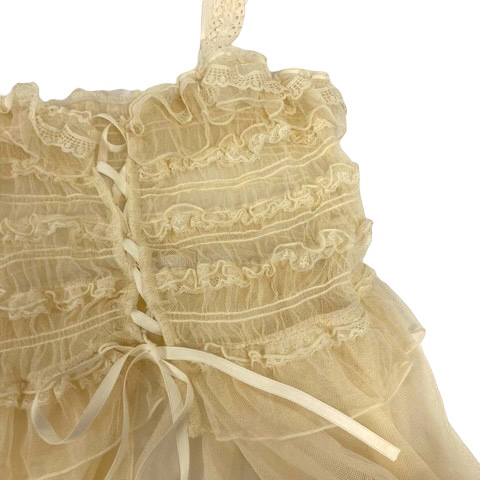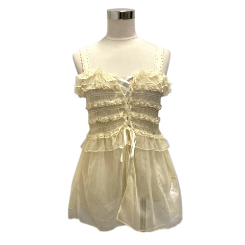アクシーズファム axes femme キャミソール ギャザー チュール レース リボン M 白 アイボリー レディース