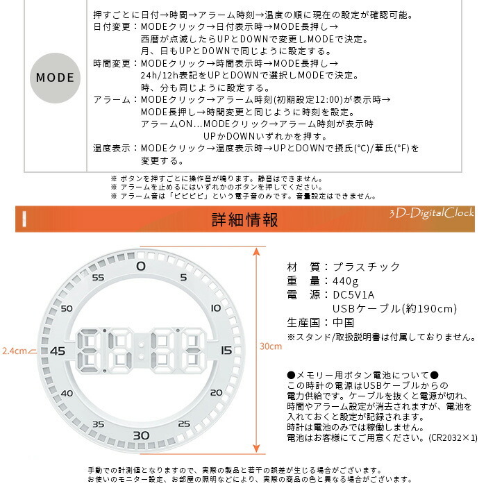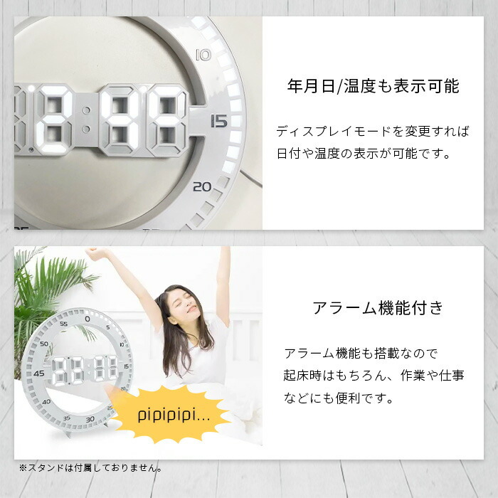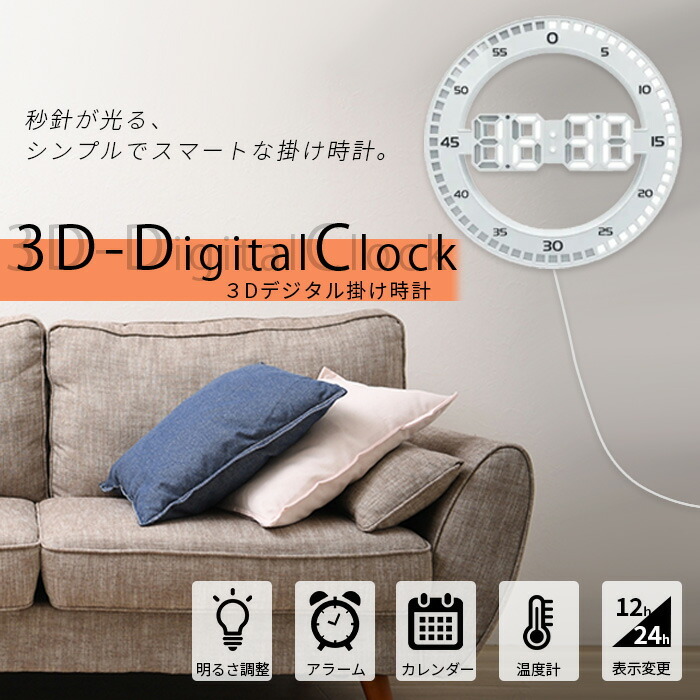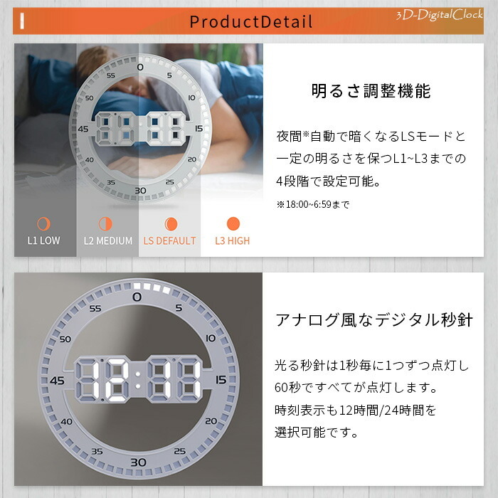 ★秒針が光る★ USB給電 デジタル掛時計 明るさ4段調整 アラーム おしゃれ