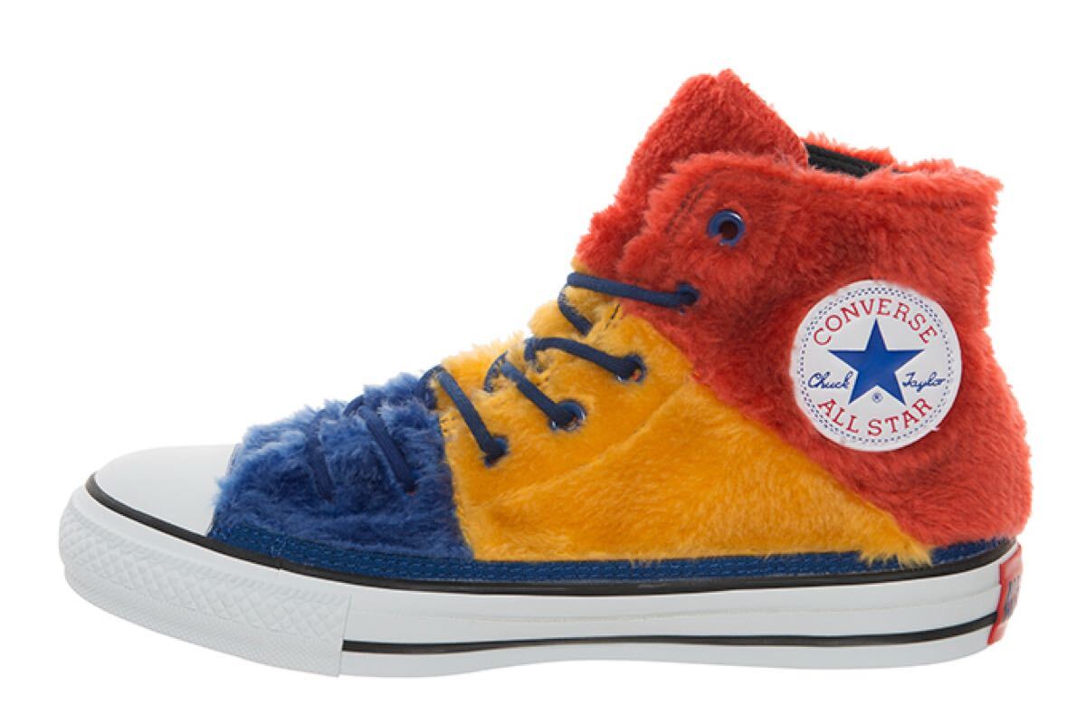 ドレッシーな多色ファーがポイントのオールスター。 シューズの3分割分を異なるカラーで表現し、コントラストを充分に楽しめるレッド/イエロー/ブルーと、 シックなダークカラーでまとめたブラウン/グレイ/ブラックの2カラー展開。 秋冬シーズンの人気素材であるもこもこアレンジのデコラバージョン。