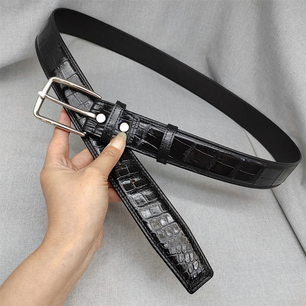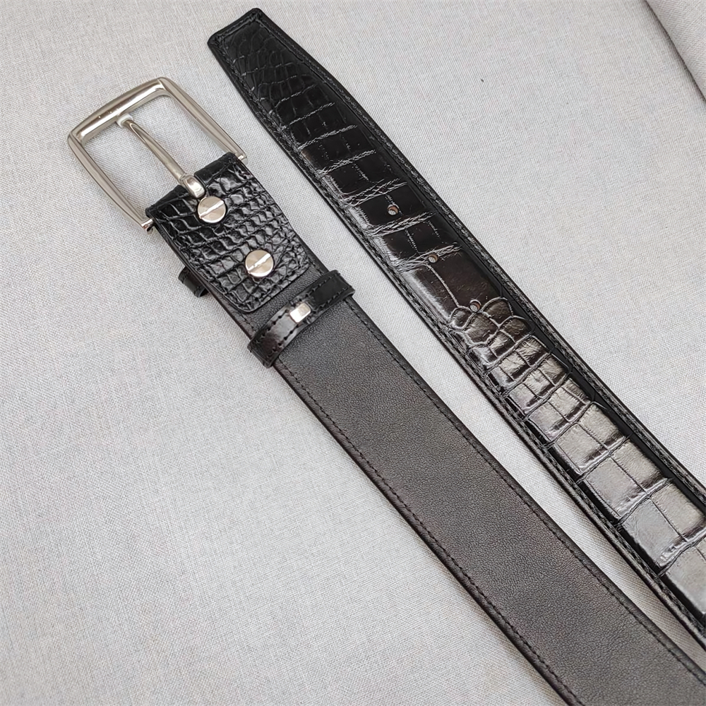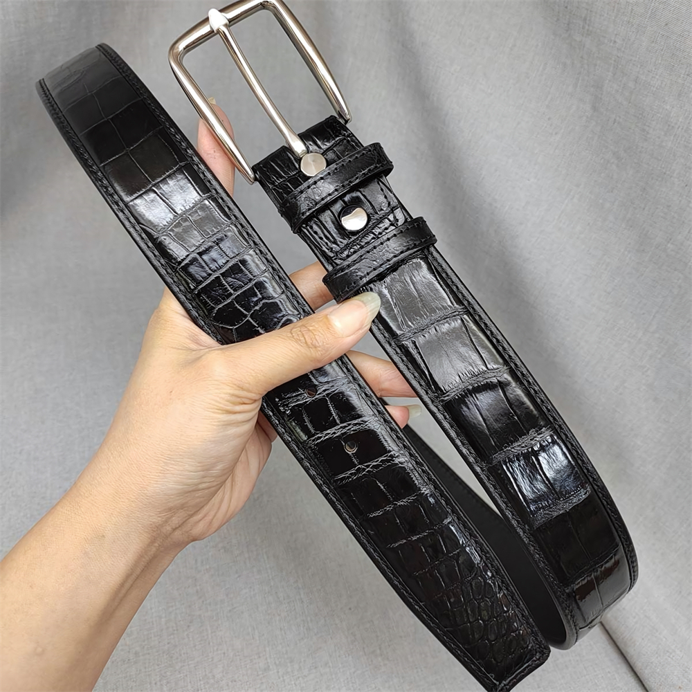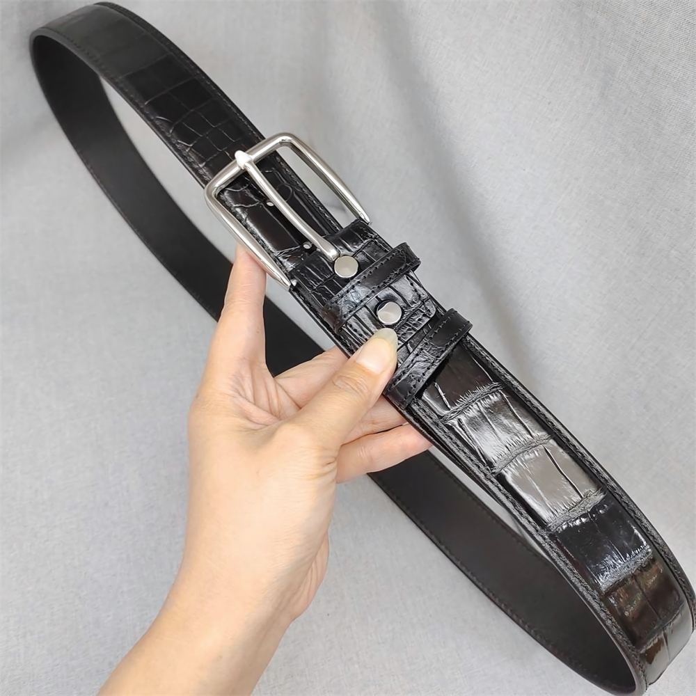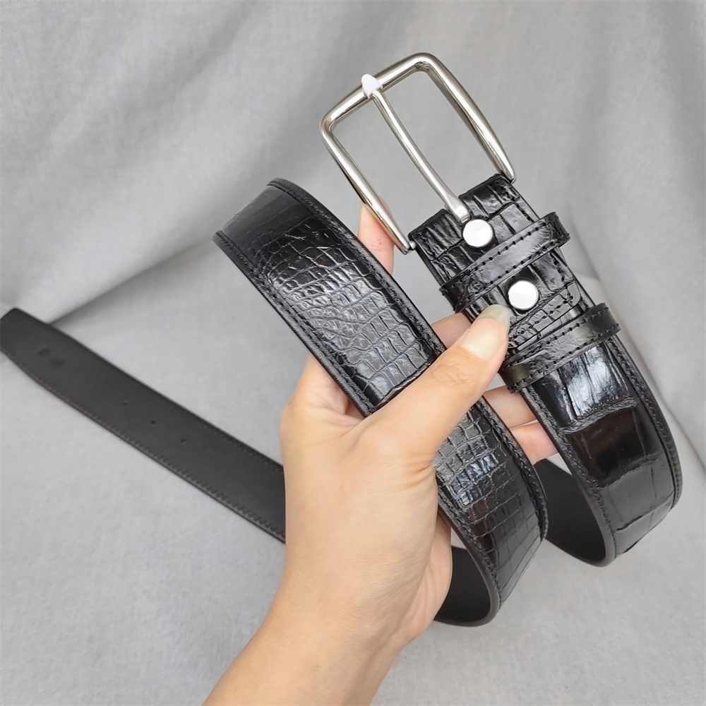 クロコダイル 総本革 紳士用ベルト 腹革使用 ワニ革 一枚革 メンズベルト 巾38mm プレゼント 男性用 バックル付き おススメ