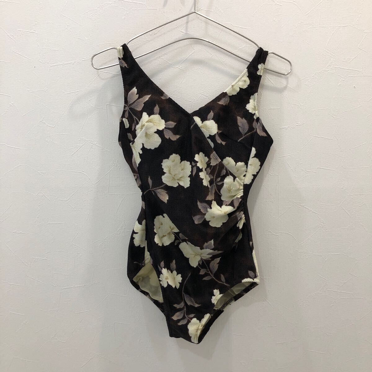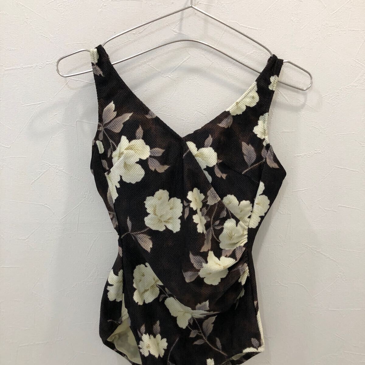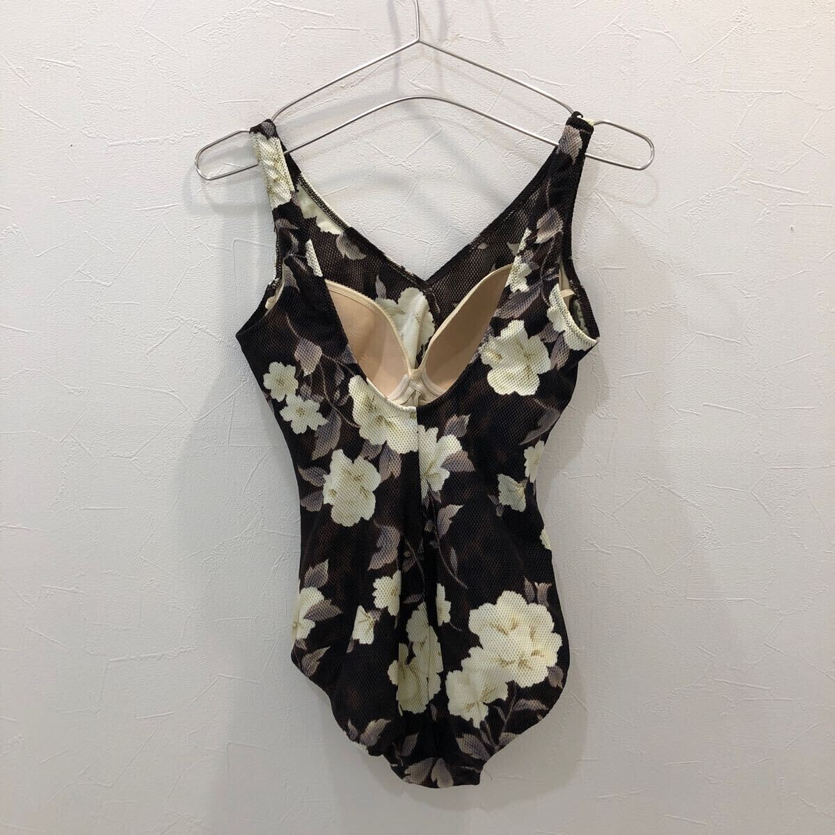 TNZ1526 スイムウェア 水着 レトロ ハイレグ 花柄 ブラウン レディース L