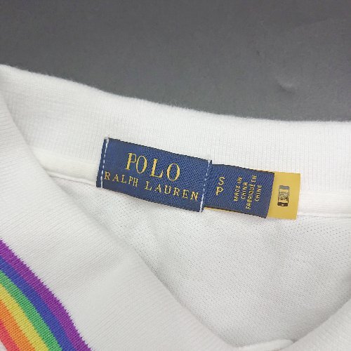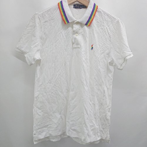 ◇ ⊂ ポロ バイ ラルフローレン レインボー 半袖 ポニー刺繍ツーカラーポロシャツ サイズ160/84A ホワイト系 レディース E