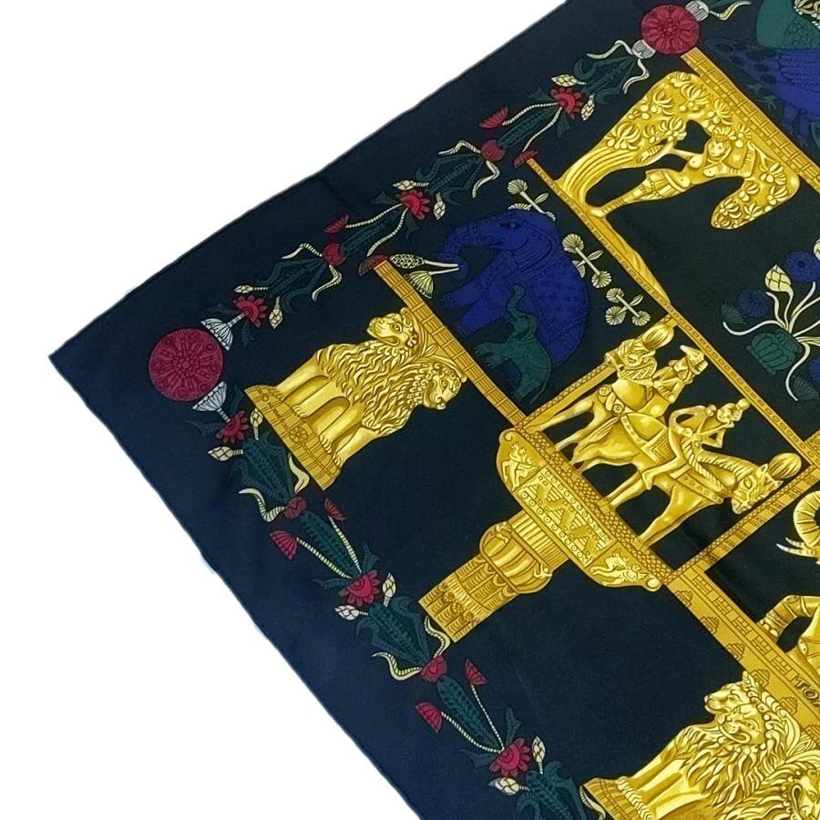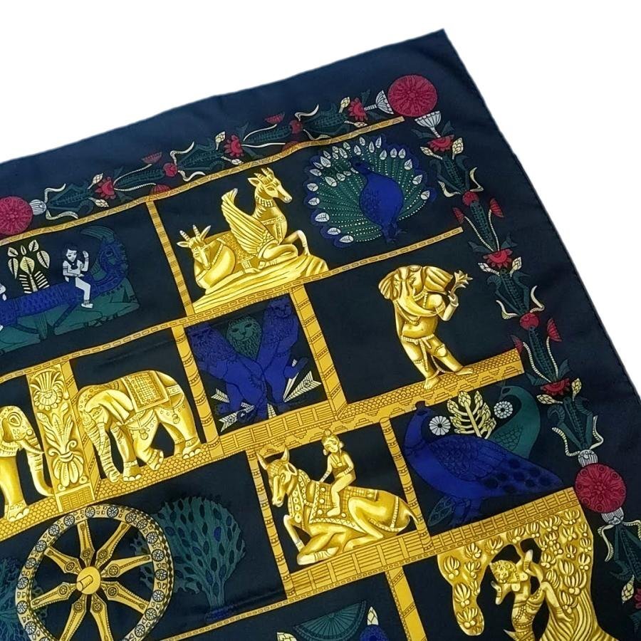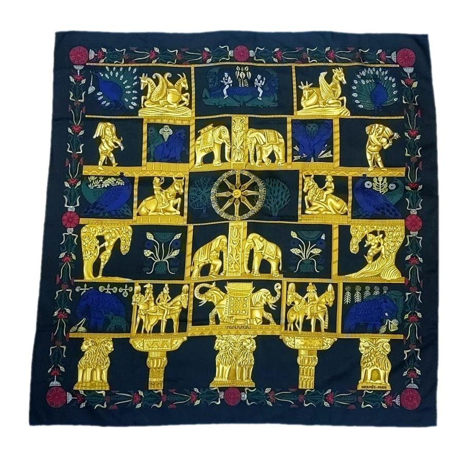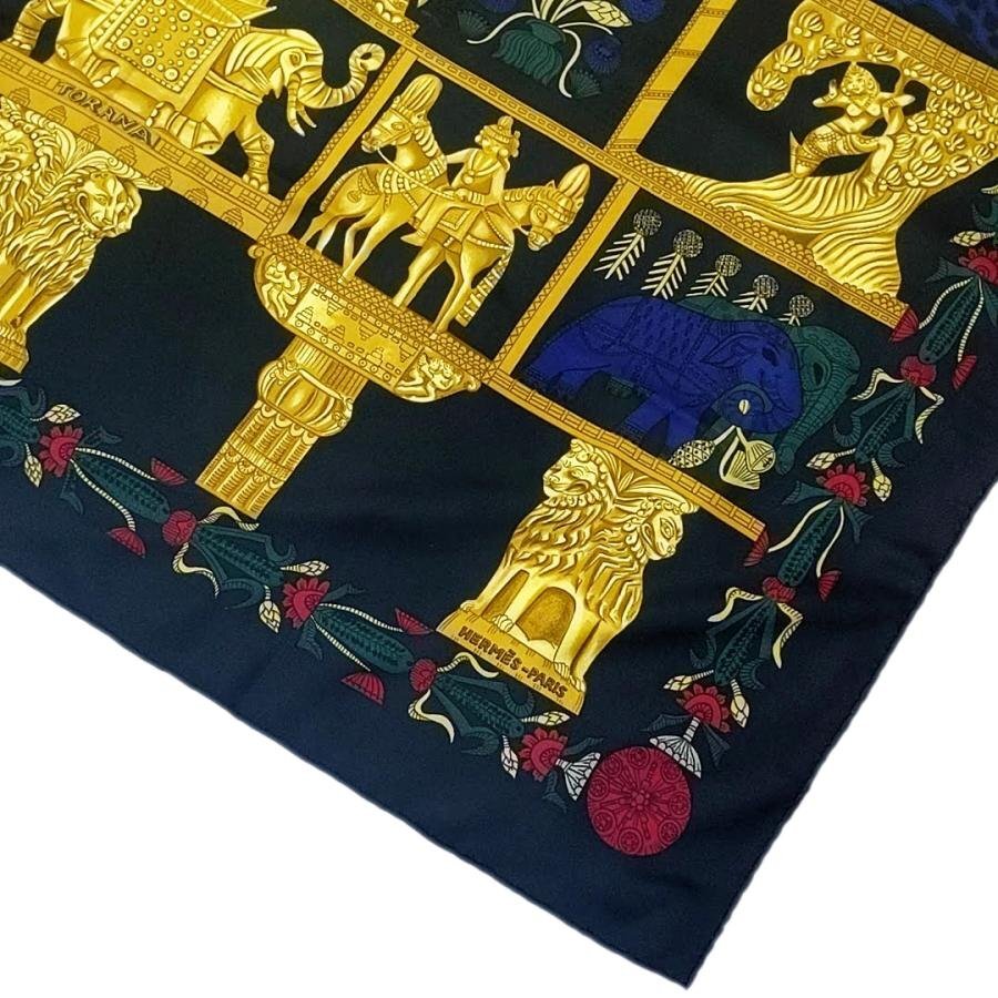 送料無料 美品 エルメス HERMES 大判スカーフ カレ90 TORANA 塔門 シルク100% 仏製 フランス製 レディース