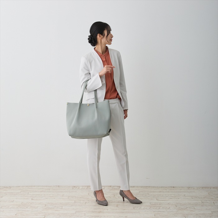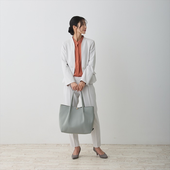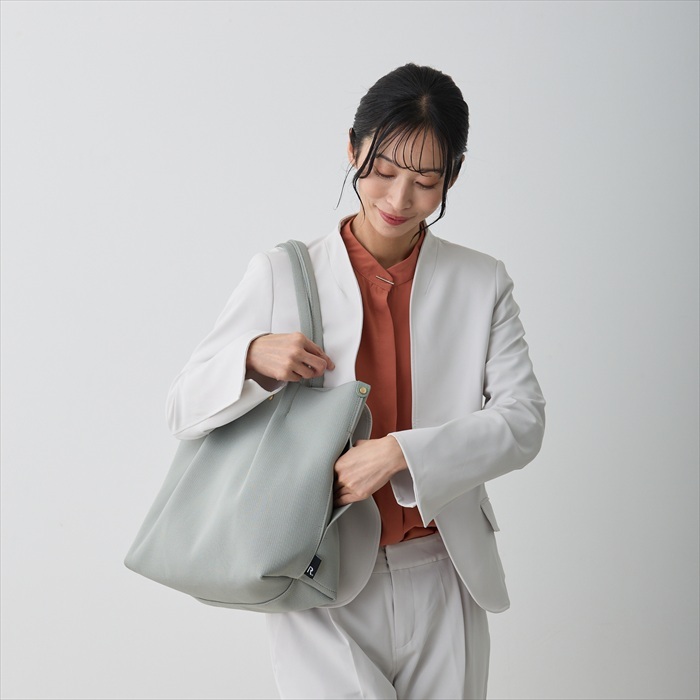 | 商品説明 | ・・トートバッグのパターンにあわせて、パーツごとに生地を編み立てていきます。 ・製造時の端材が出ず、生地端の処理も不要。無駄の少ない製法でつくられました。 ・必要な分だけパーツを用意し、素材をフル活用しました。 ・A4サイズのファイルが収納できる「ミディアム」サイズ。 ・口元にドットボタンを追加してリニューアルです。 ・バッグを置いたときなど、口元が留められると安心。ボトル、コスメポーチ、ノートなどもらくらく収納。 ・13インチのPCも入り、ビジネスバッグとして重宝します。スマホやハンカチが入る内ポケット付き。 ・大きく開く口元で、モノの出し入れがしやすく、中身もパッと確認できます。 ・サイドのルーポケットには、取り出す頻度の高い小物を入れておくのに便利です。 ・ハンドル長めで肩に掛けやすい。腕掛けでも肩かけでも、シーンに合わせて選べます。 ・体に寄り添うやわらかさがありながら、自立するシルエット。 ・荷物が少ない時にも型崩れしにくくなっています。 ・いつでも清潔に。 ・洗濯可能で、衛生的に安心してご利用いただけます。 ・季節を問わず大活躍です。 |