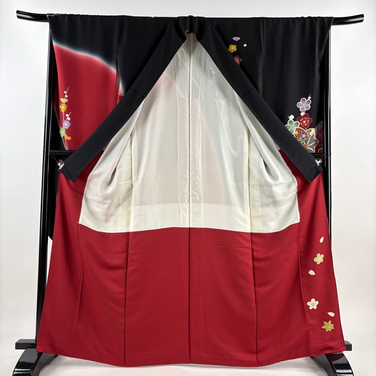 振袖 美品 名品 桜 菊 金糸 金彩 黒 袷 身丈166 裄丈67.5 L 正絹 【中古】 |