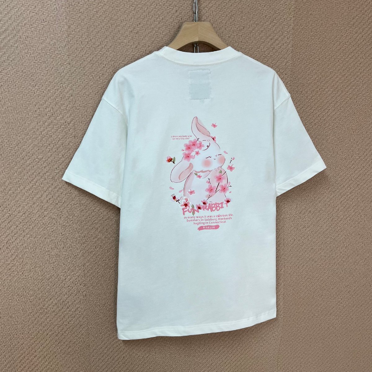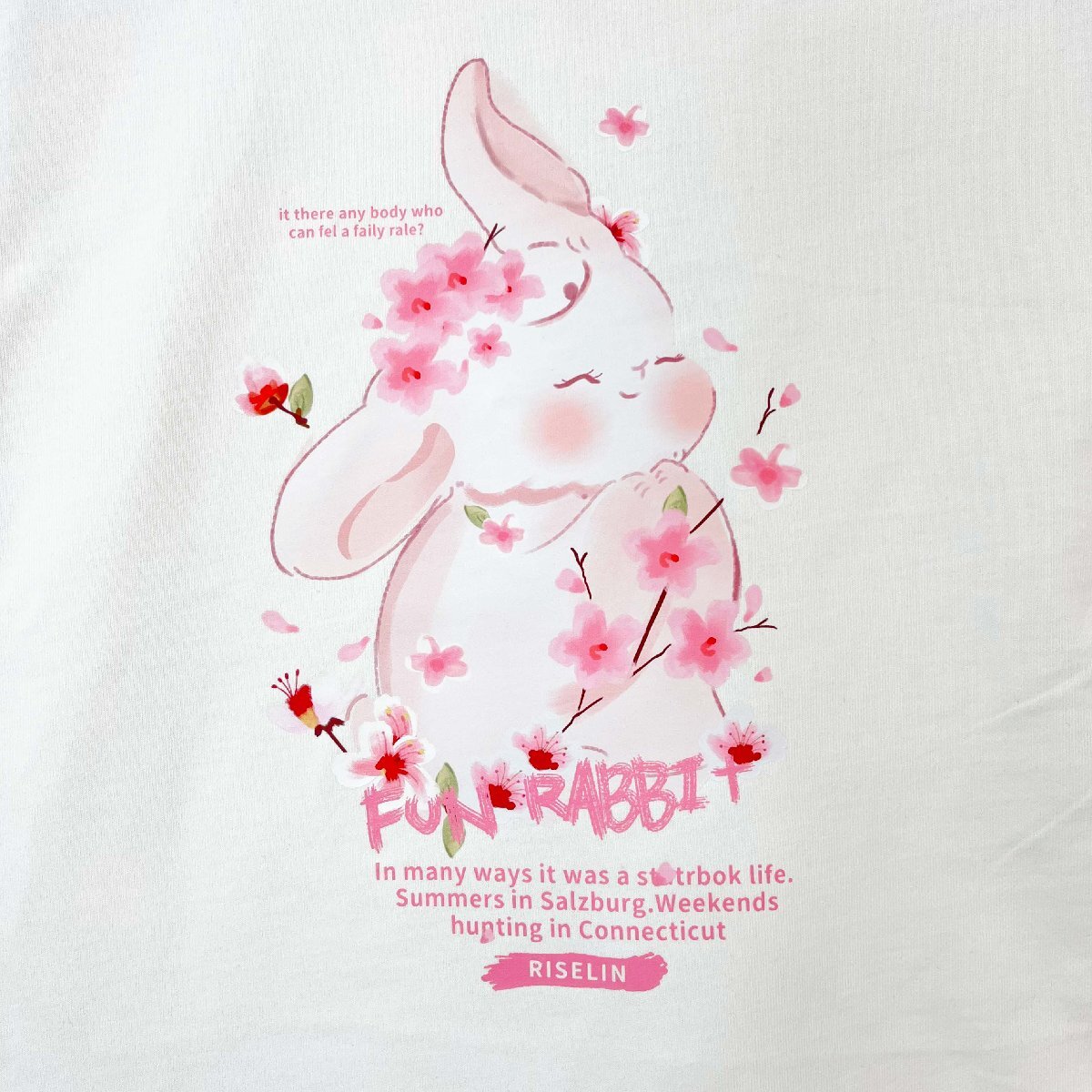 逸品 ヨーロッパ製※定価2万◆ブルガリア発※RISELIN 半袖 Tシャツ エジプト綿100% 柔らか ウサギ柄 花柄 可愛い カットソー 日常 夏 XL/50サイズ