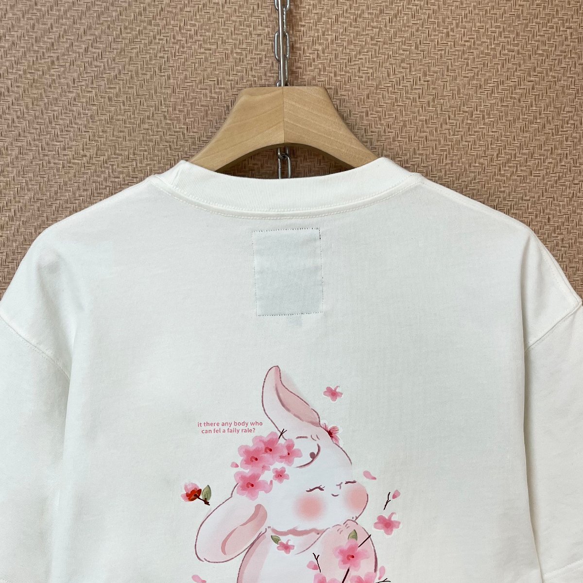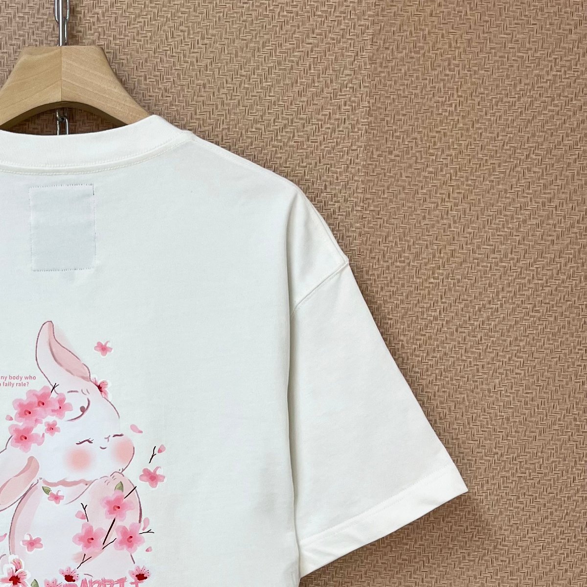 逸品 ヨーロッパ製※定価2万◆ブルガリア発※RISELIN 半袖 Tシャツ エジプト綿100% 柔らか ウサギ柄 花柄 可愛い カットソー 日常 夏 XL