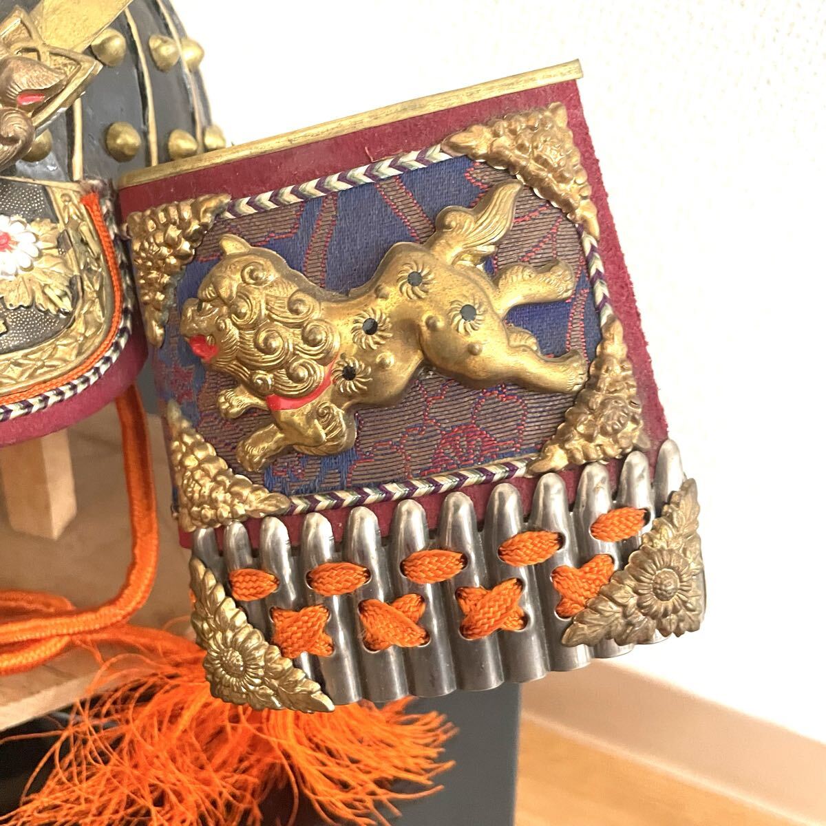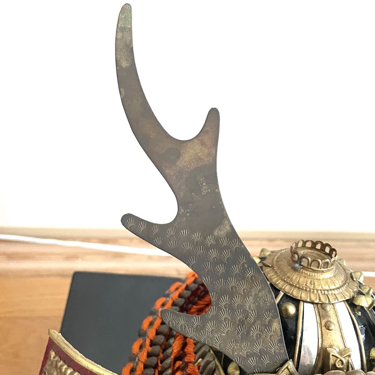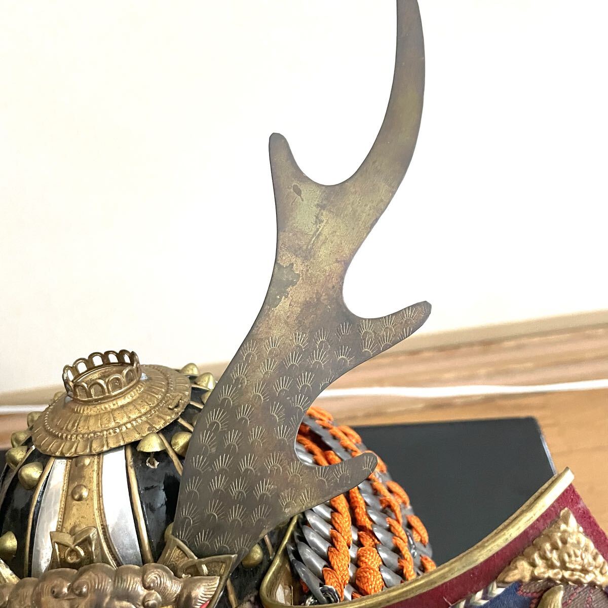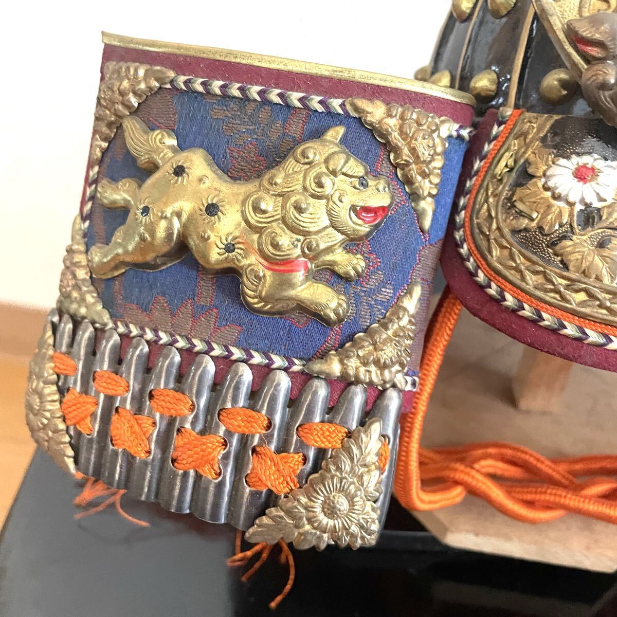 何十年も前の兜です。金属部分は経年劣化で色がくすんでいます。