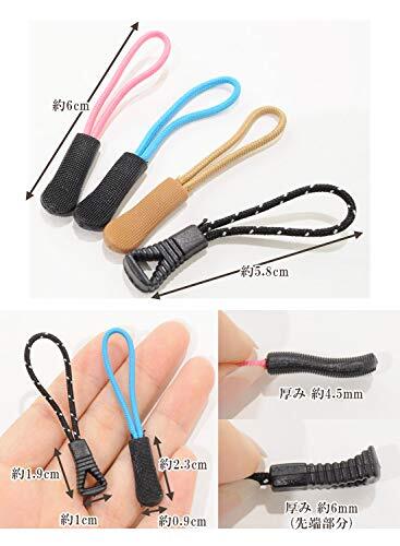 サイズ:【ピンク・ブルー・ベージュ】  全長 約6cm 引き手部分の幅 約0.9cm 【ブラック】   全長 約5.8cm 引き手部分の幅 約1cm ※カラーによって、サイズ・デザインが異なります。  また、紐の長さは若干個体差がございます。 紐の太さ: 約1.5mm