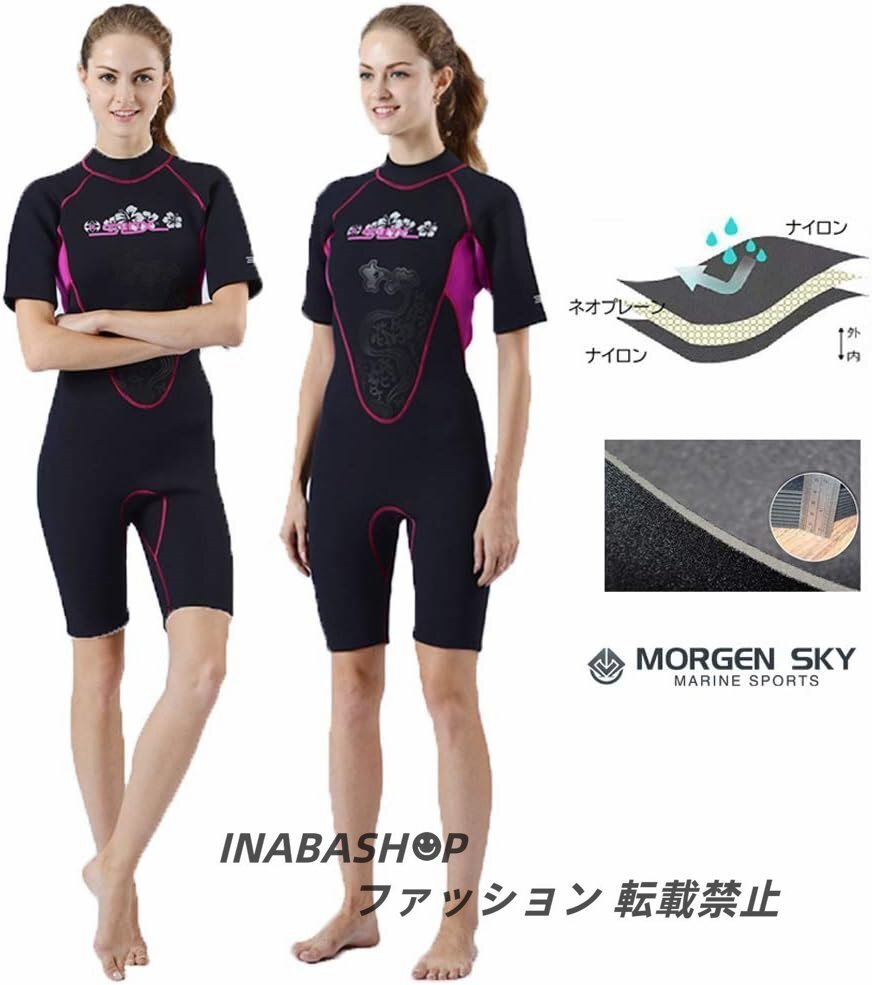 ウェットスーツ スプリング レディース 半袖 3mm ショート丈 ネオプレン ダイビング サーフィン フィッシング マリンスポーツ S~XL