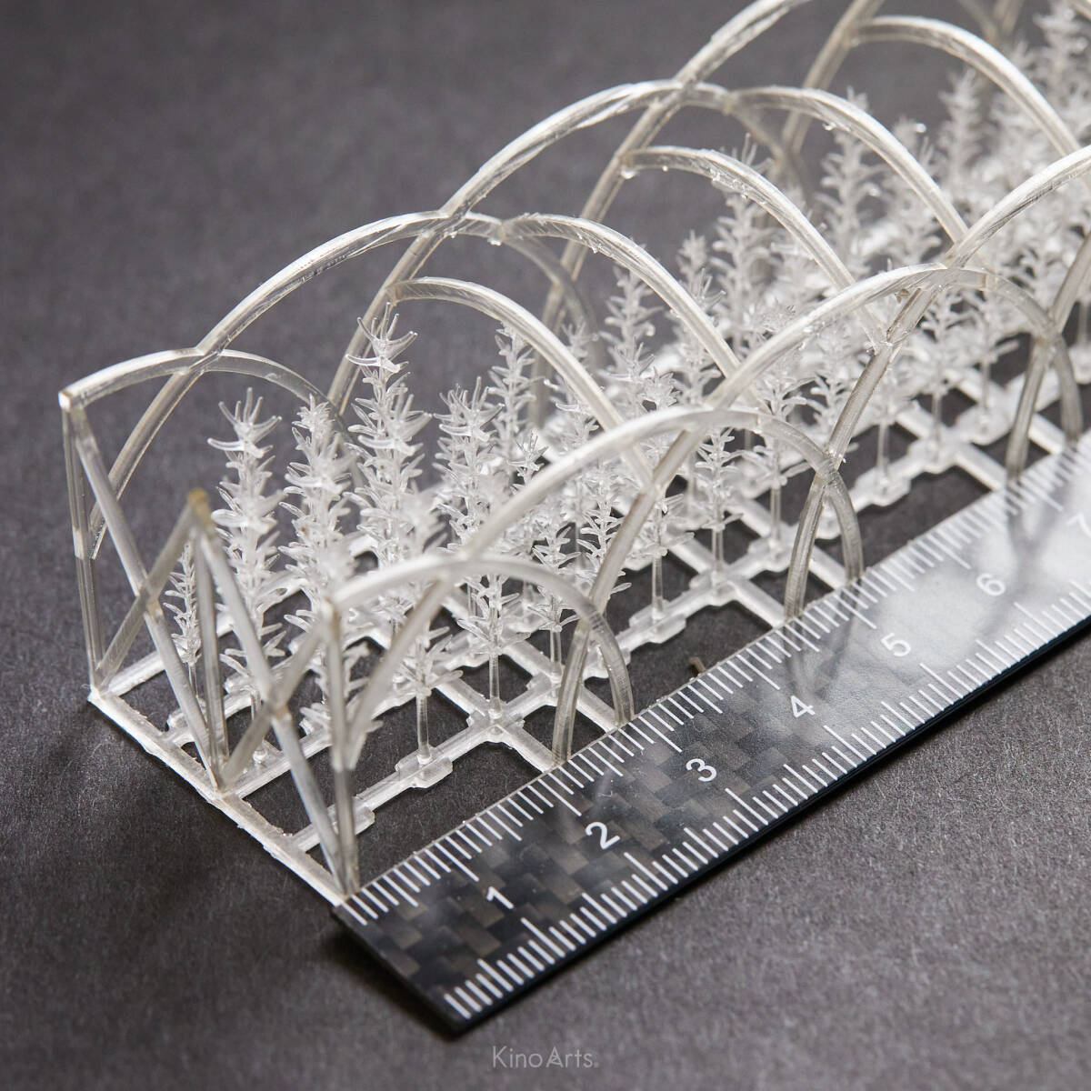 3Dプリンターならではの全方向に伸びた葉やリアルな質感を表現しています。塗装後に植物らしい質感が際立つよう、クリアレジンで造形しています。
