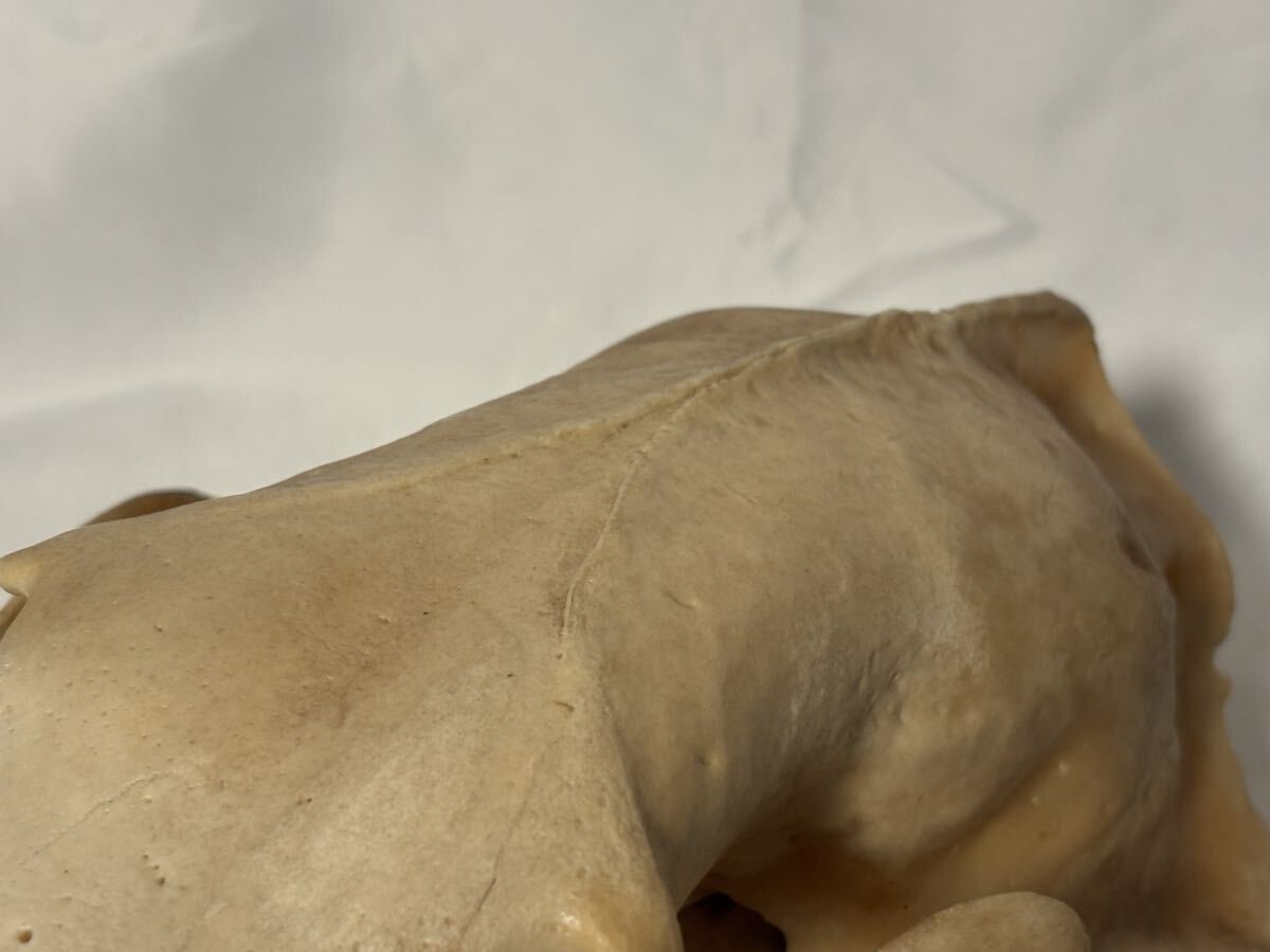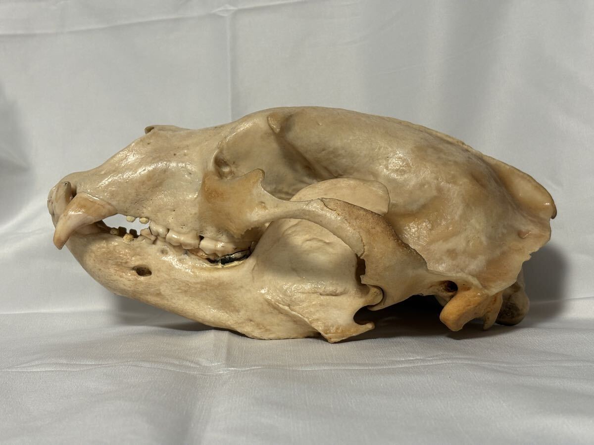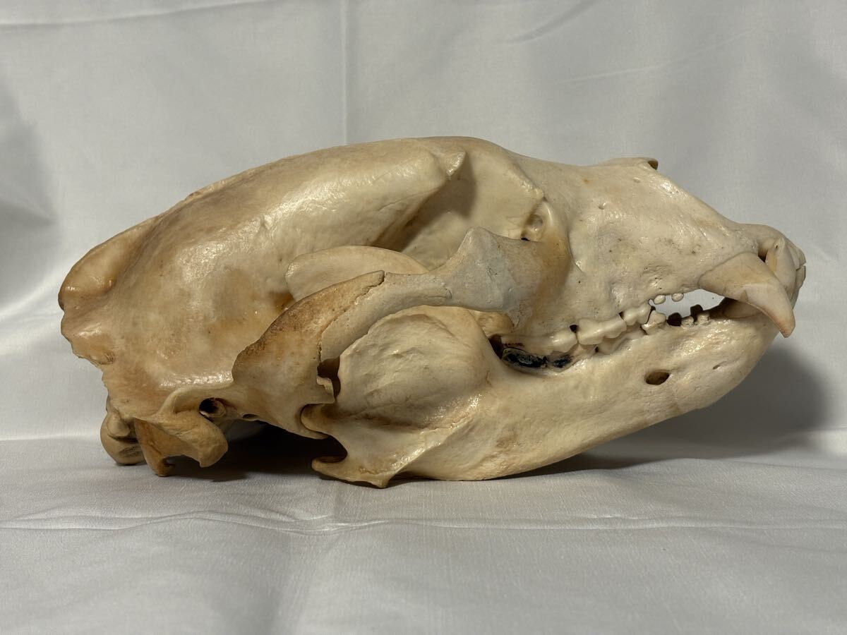 非常に大きな老成オスで、頭骨の幅や密度も申し分ありません。博物館で用いられるパラロイドが塗布されています。