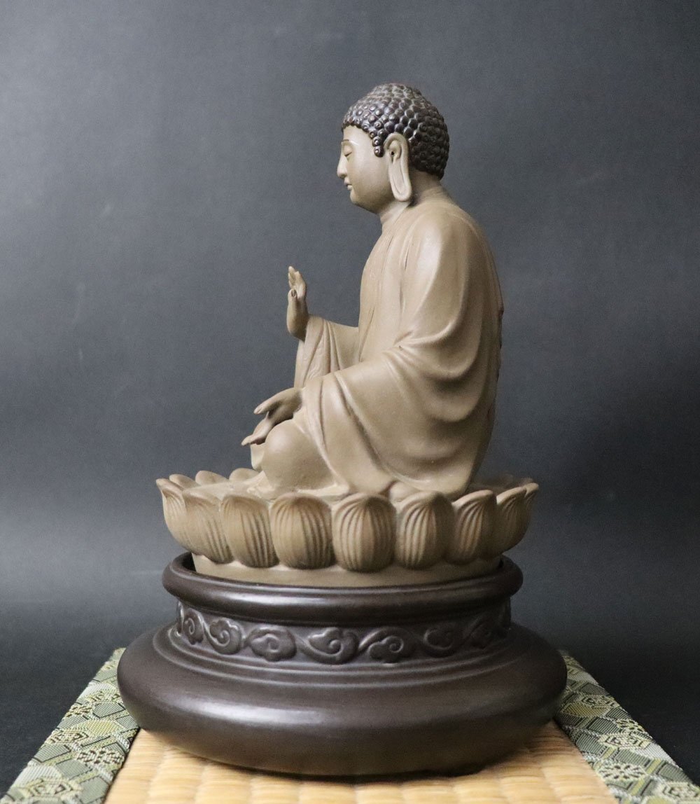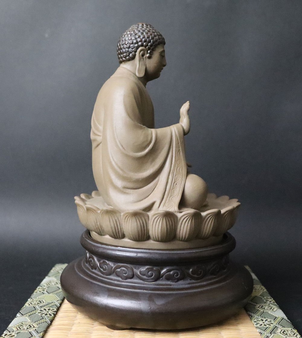 ・商品は 仏教美術 釈迦如来坐像/台座 仏像/陶器 高さ/22㎝ 刻印 綺麗 です。