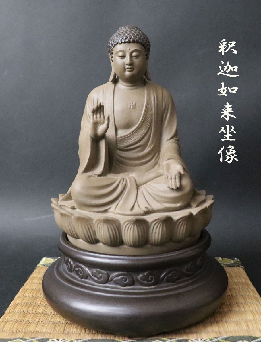 ■W-4673■仏教美術 釈迦如来坐像/台座 仏像/陶器 高さ/22㎝ 刻印 綺麗■
