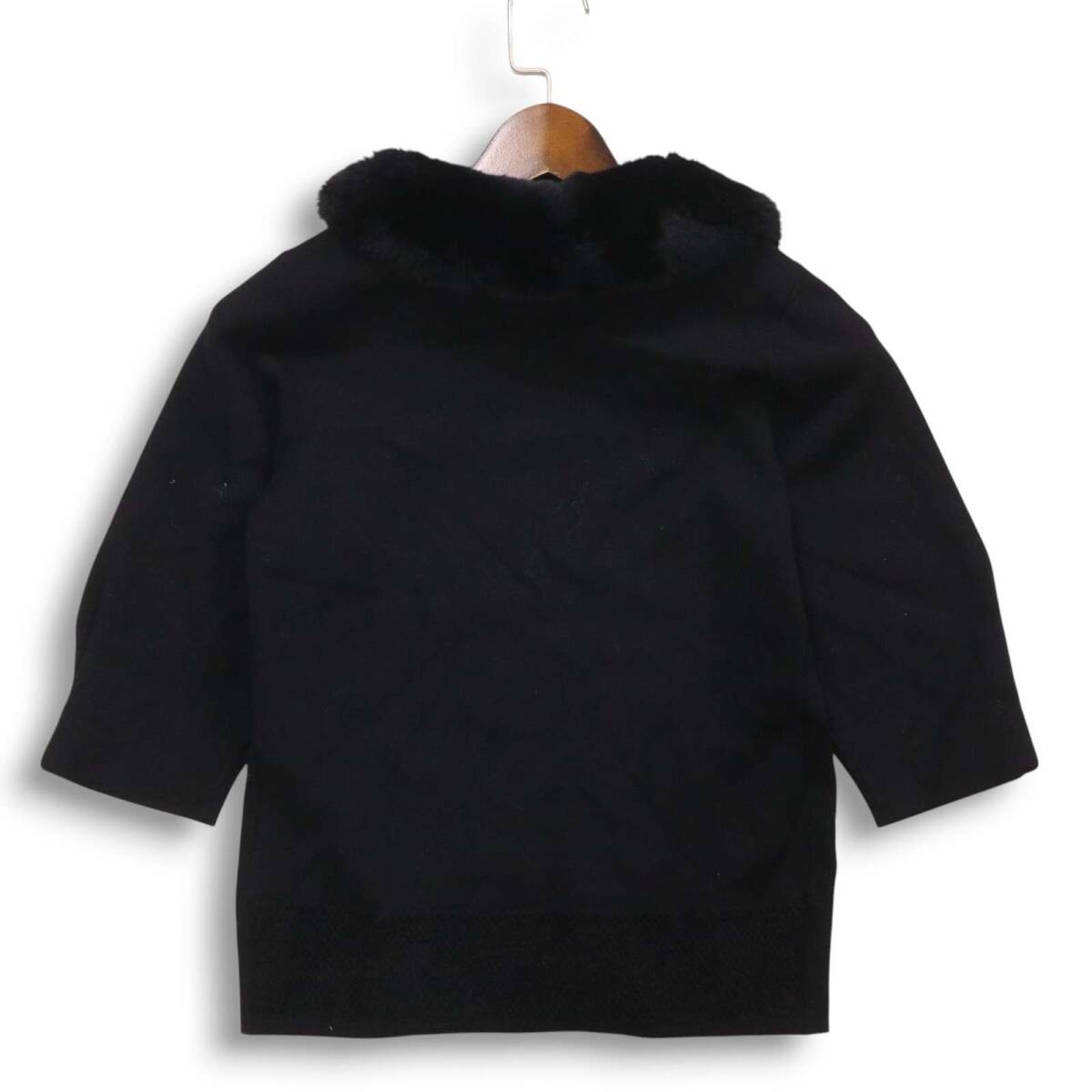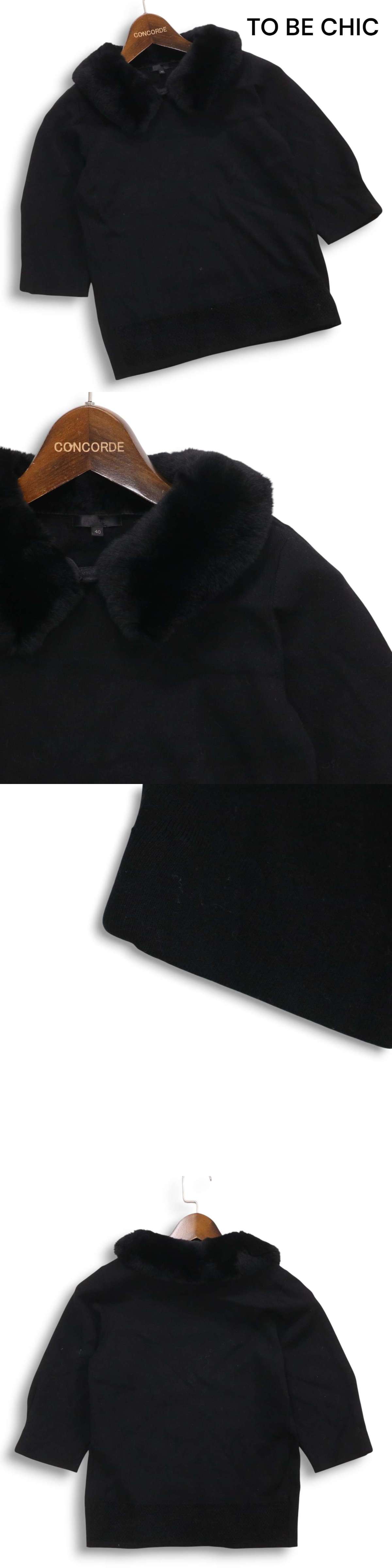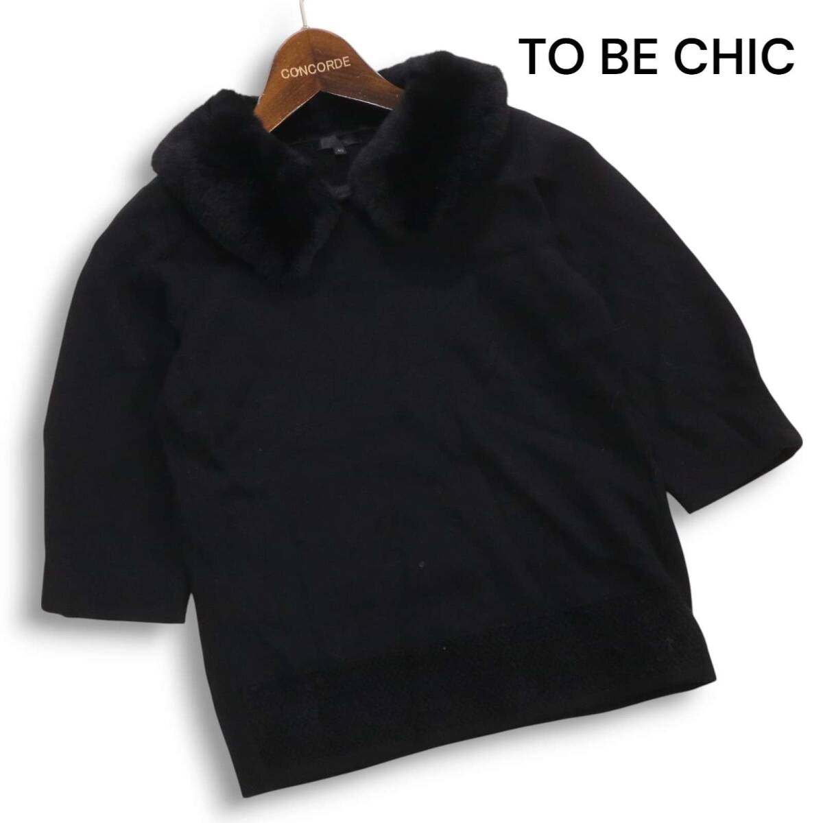 TO BE CHIC トゥービーシック 秋冬 レッキス ラビット ファー★ レーヨン 半袖 セーター ニット Sz.40 レディース 黒
