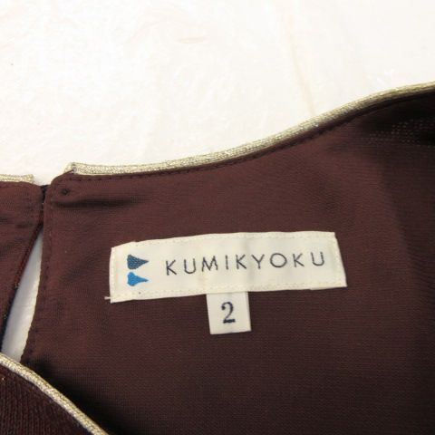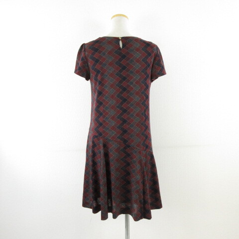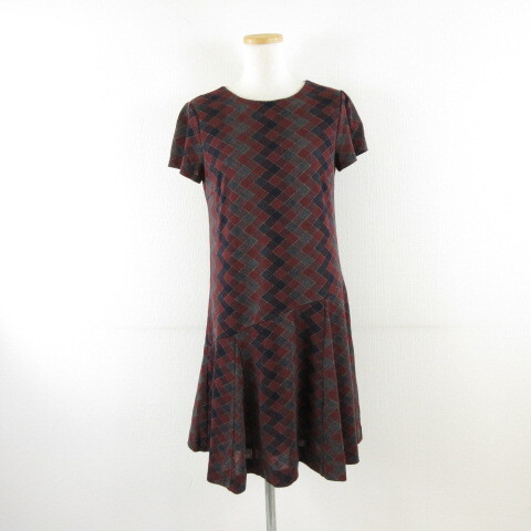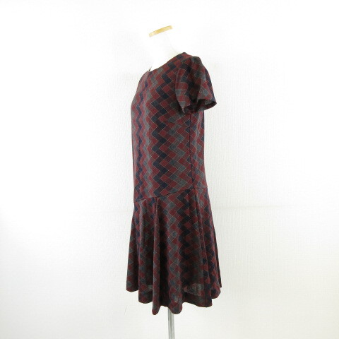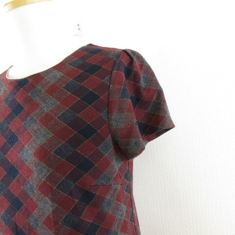 クミキョク 組曲 KUMIKYOKU ニットワンピース アーガイルチェック ひざ丈 半袖 茶 紺 2 *A851 レディース