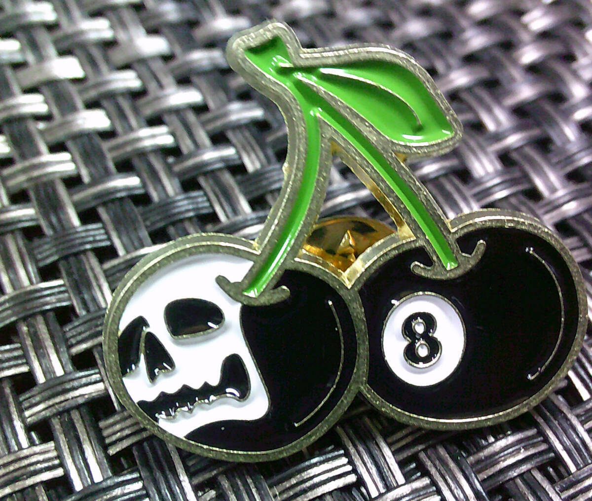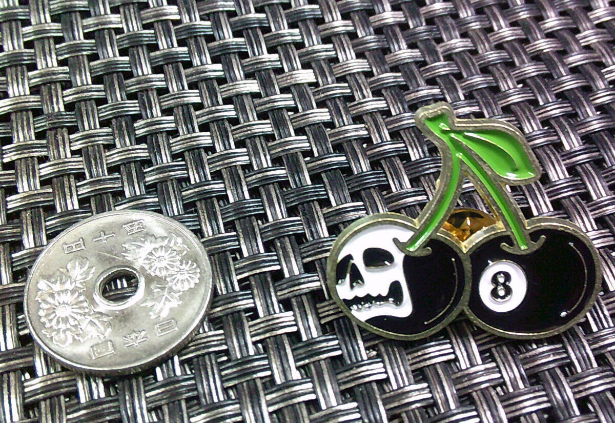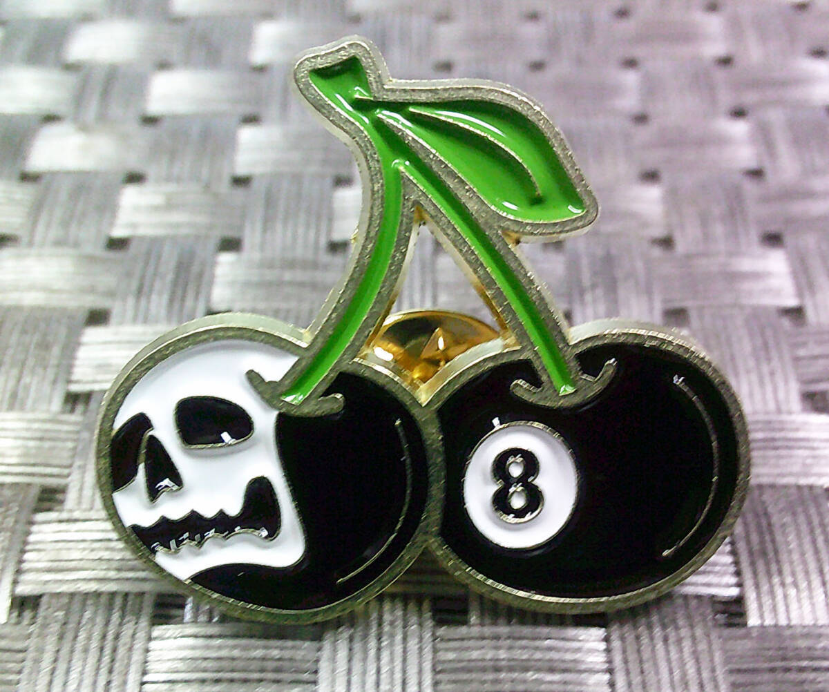 《黒桜桃US髑髏8》■新品■チェリー さくらんぼ 髑髏 ビリヤード エイトボール ピンバッジ バッチ■アメリカ◆ ◇・コスプレ◎激シブ