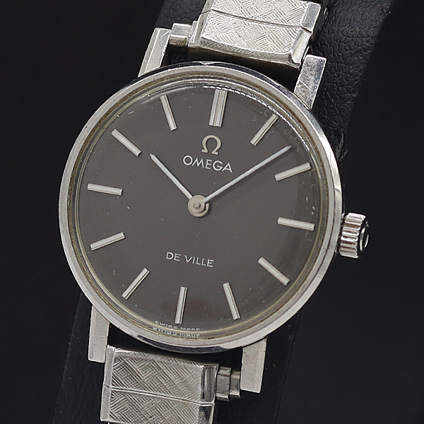 1円 稼働 オメガ デヴィル ブラック文字盤 手巻き レディース腕時計 3823100 8PRT KTU