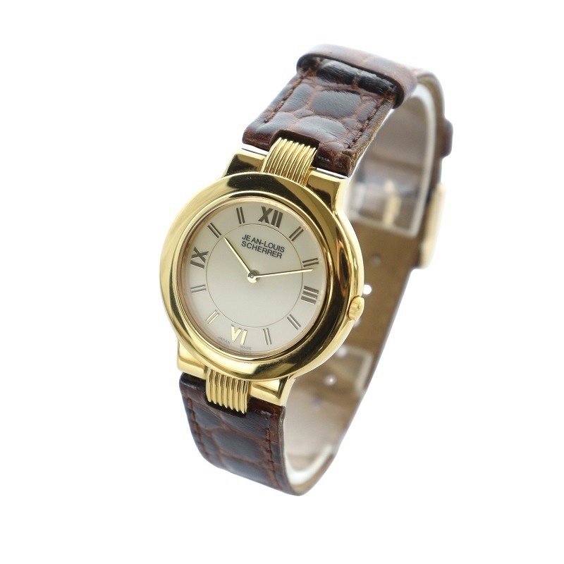 ジャンルイシェレル JEAN-LOUIS SCHERRER 腕時計 ウォッチ クォーツ ローマン レザーベルト ゴールド色 ■GY18 /MQ メンズ