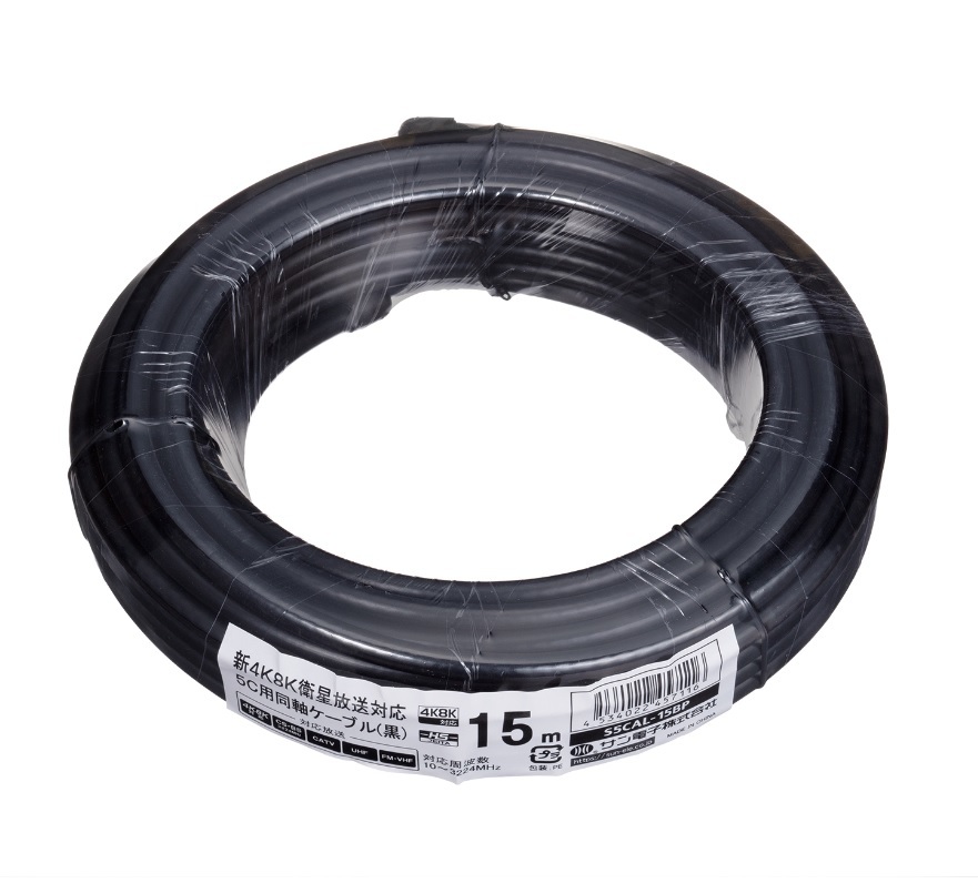 両側カット仕様です。(15mケーブル・ラップ巻き梱包仕様)